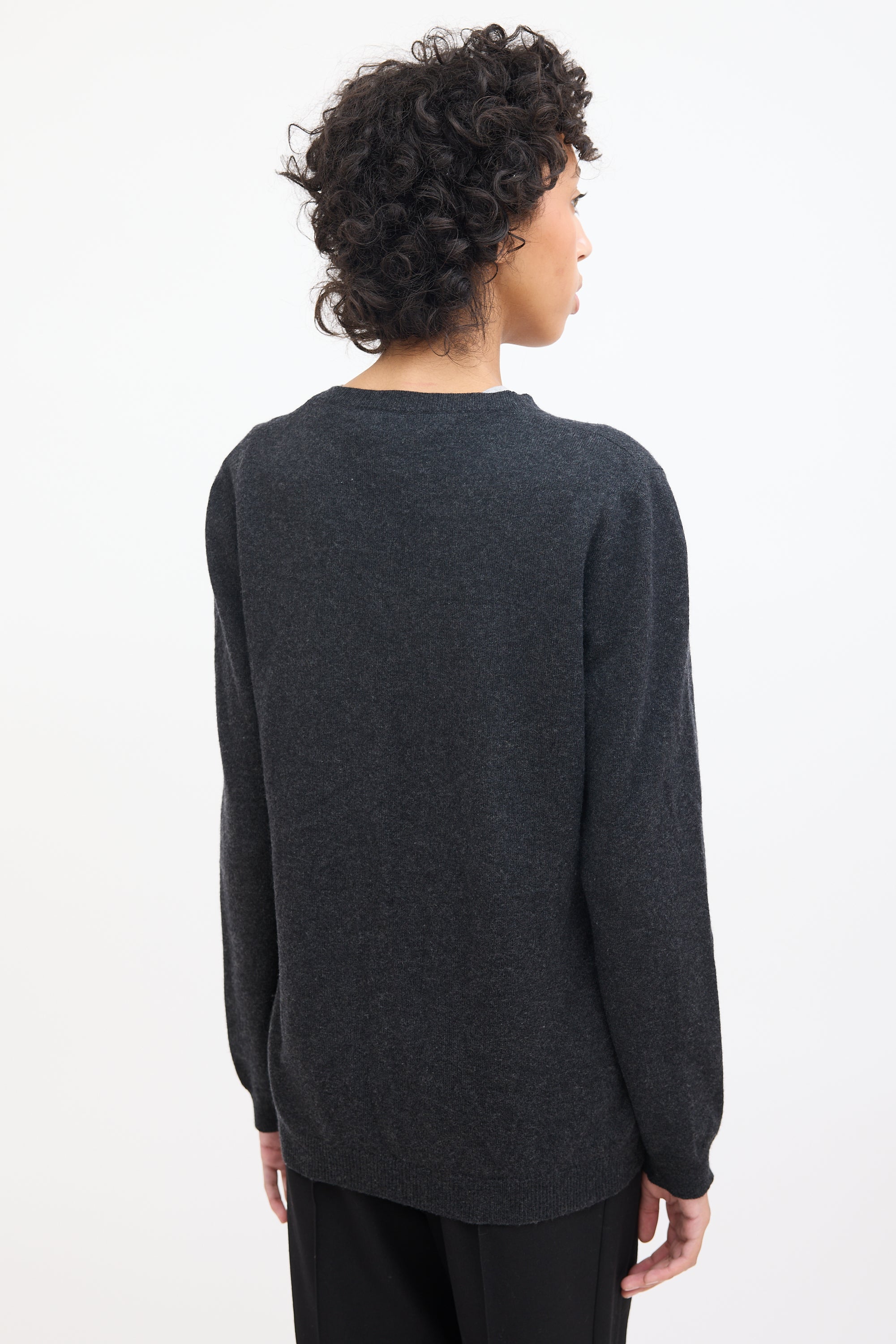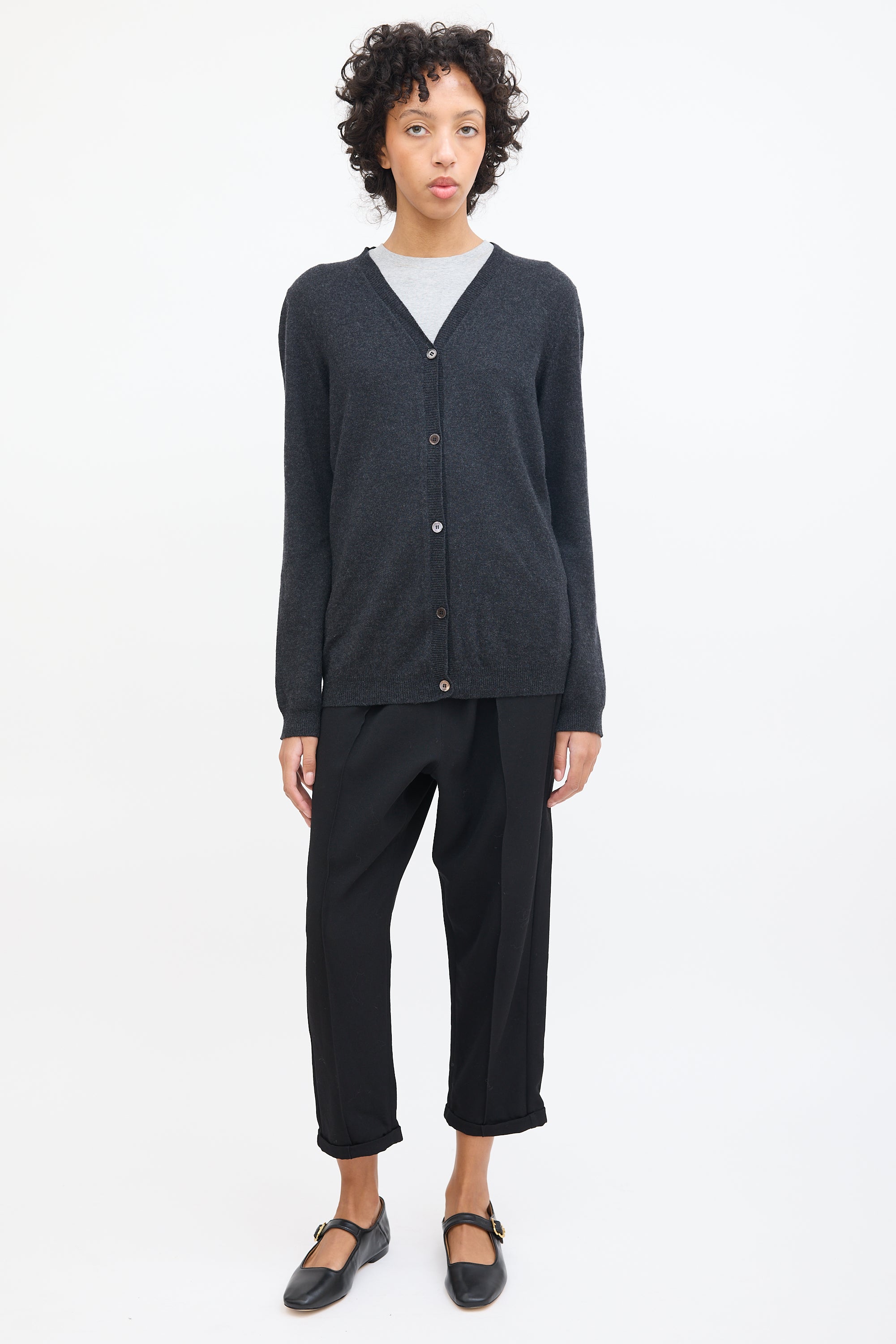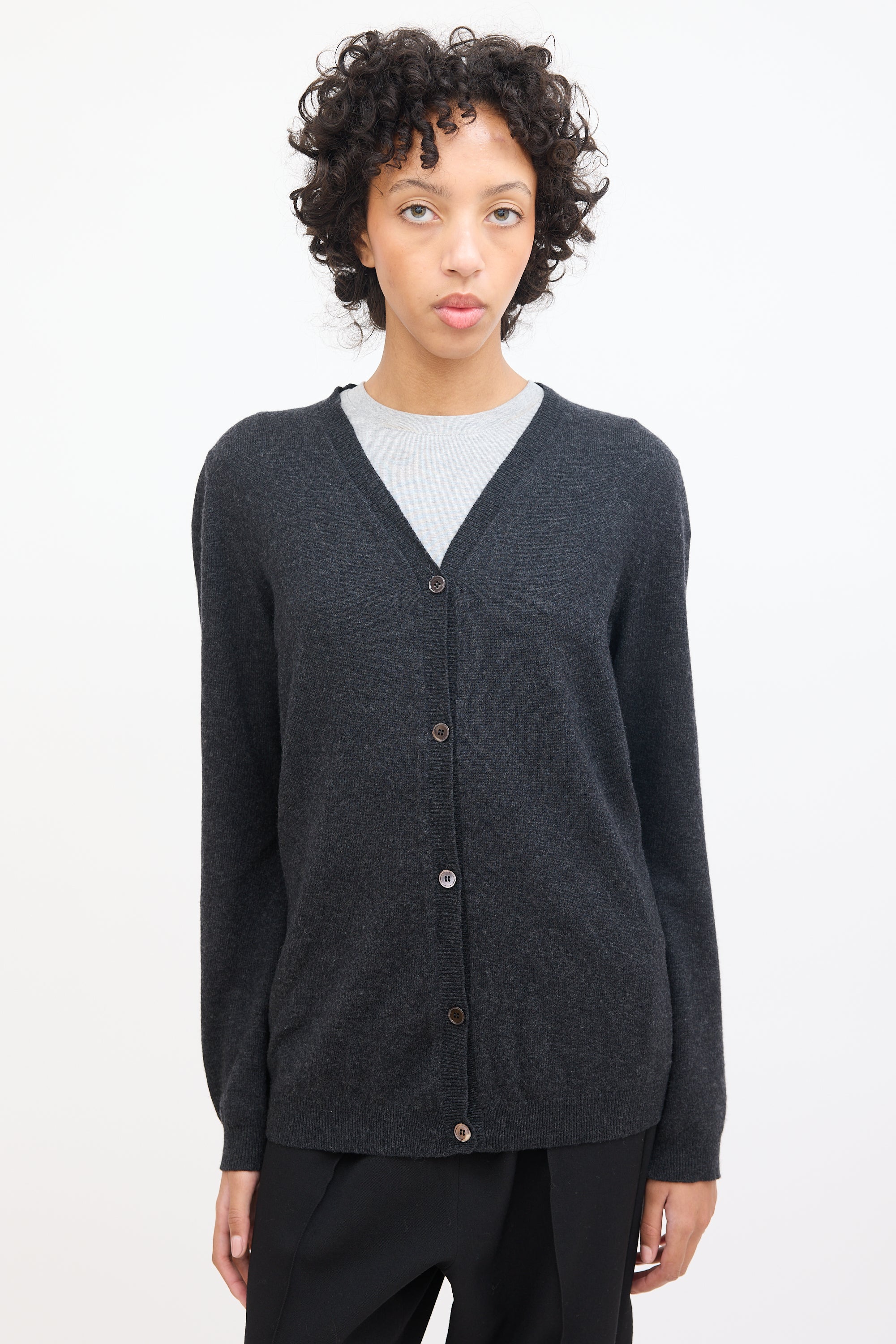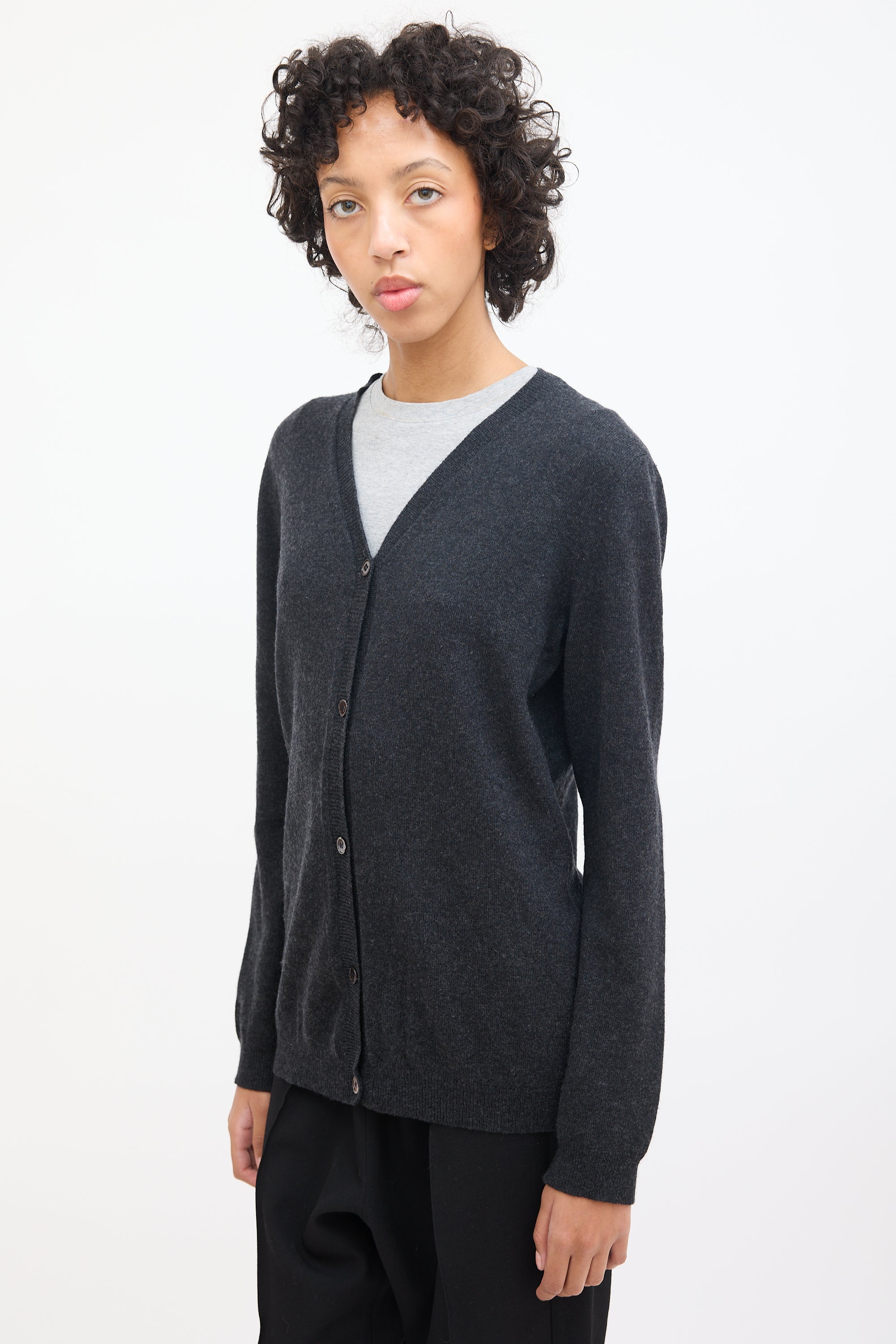 Pre-owned Marni dark grey cashmere cardigan featuring a V-neckline, button up front closure, long sleeves, and ribbed neck, placket, hem, and cuffs.