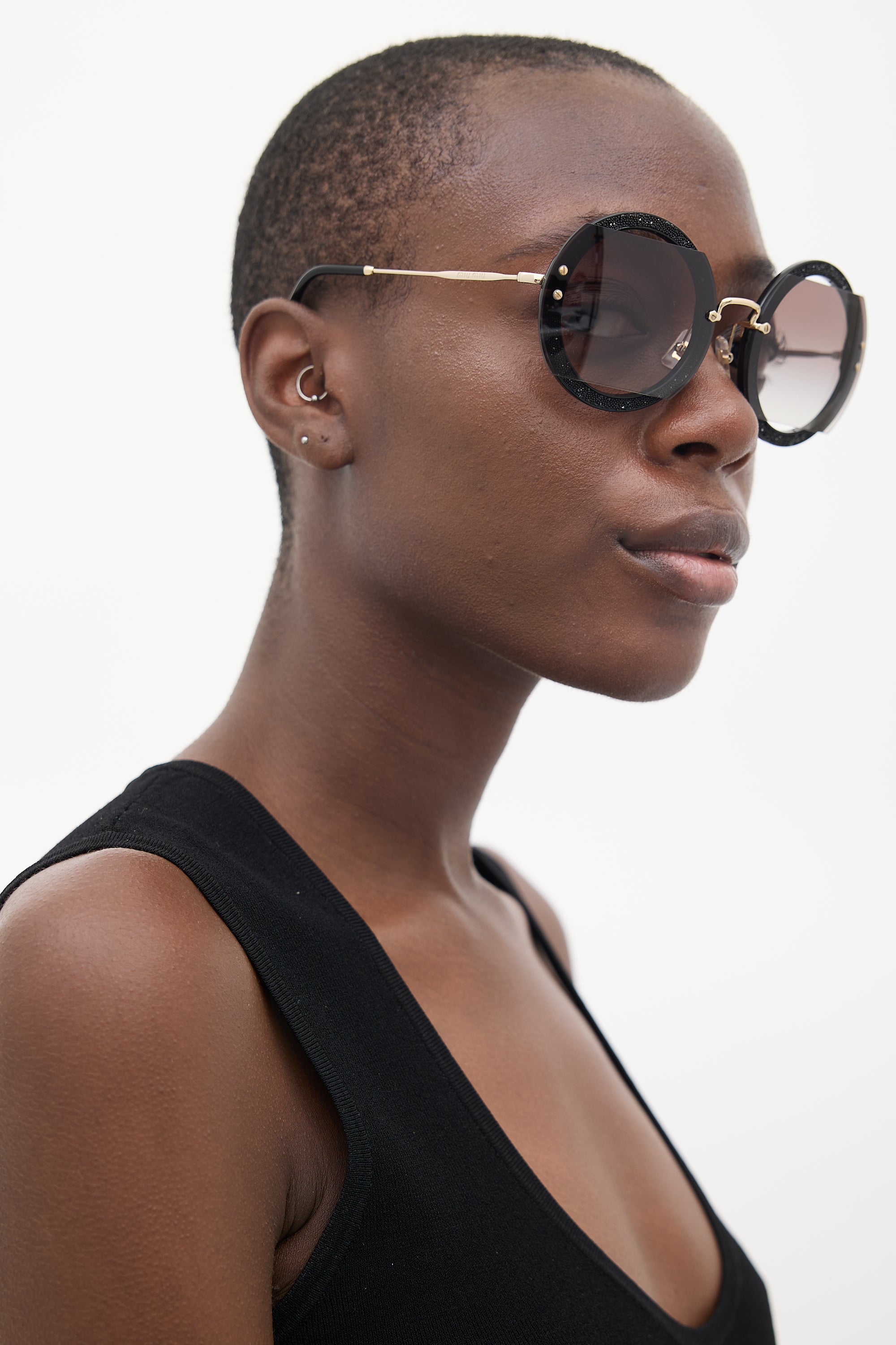 Black & Gold SMU06S Circular Glitter Sunglasses