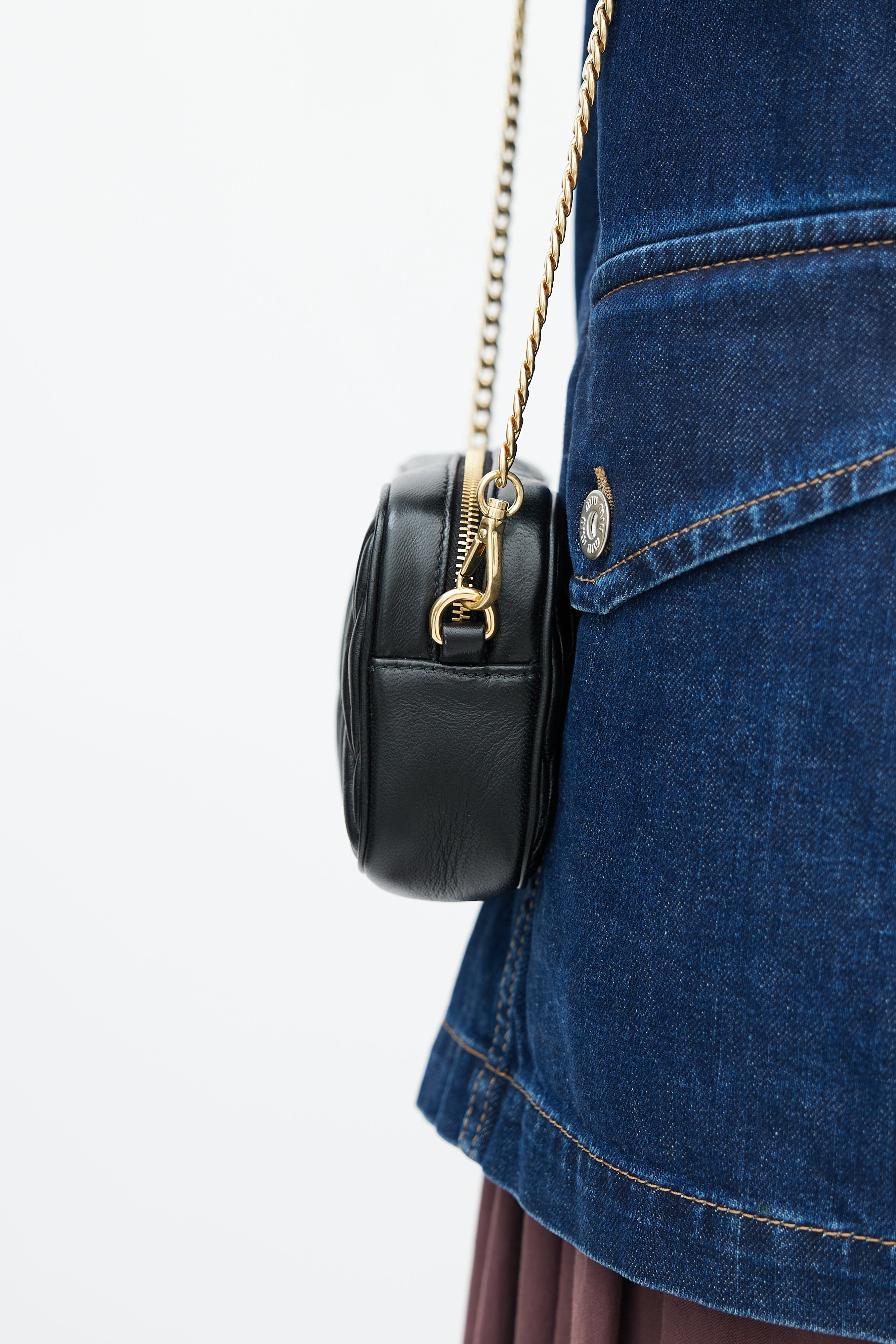 Black Matelasse Logo Chain Belt Bag