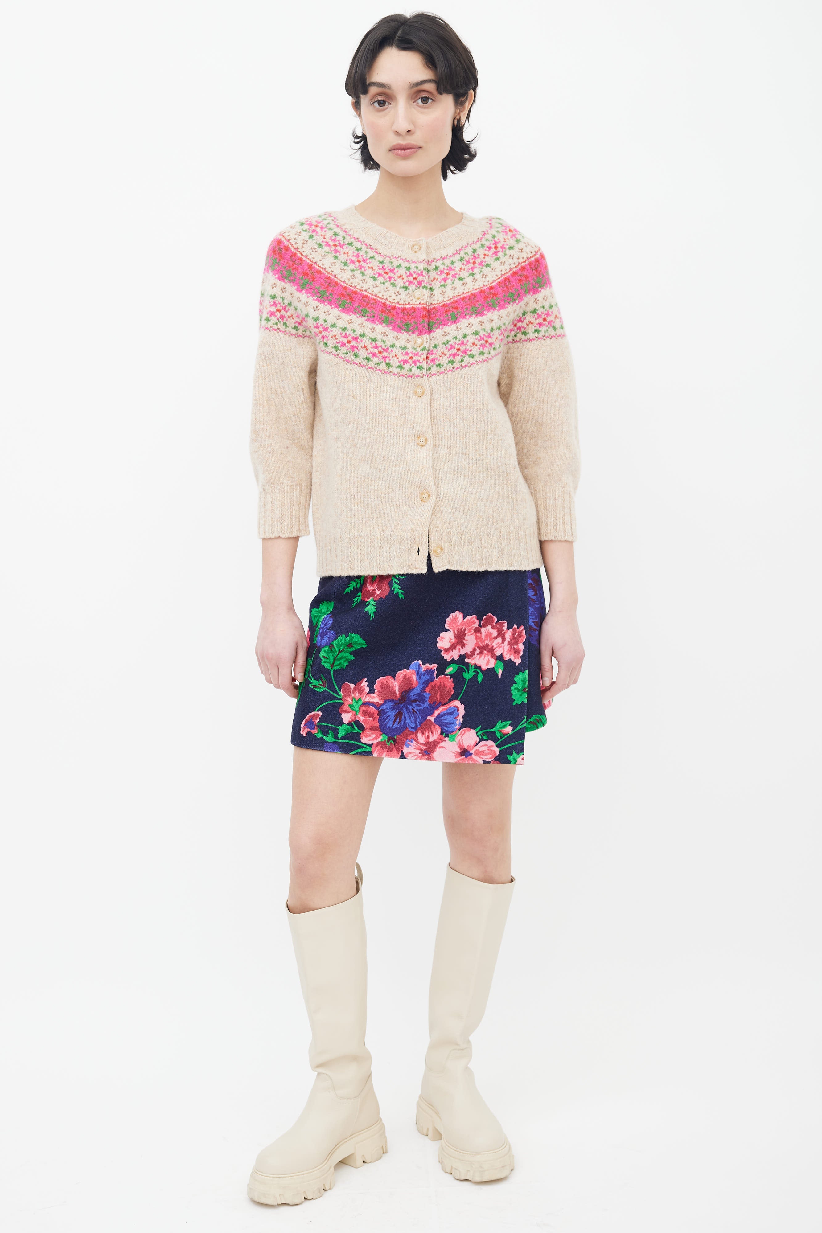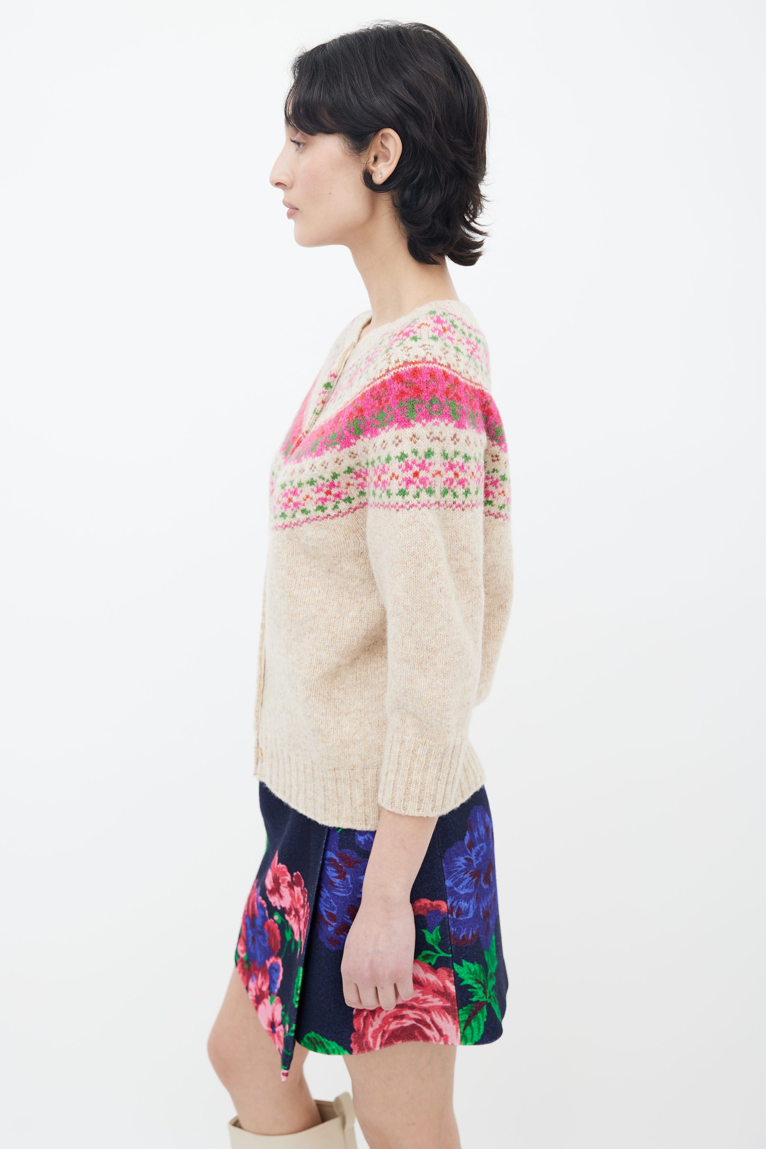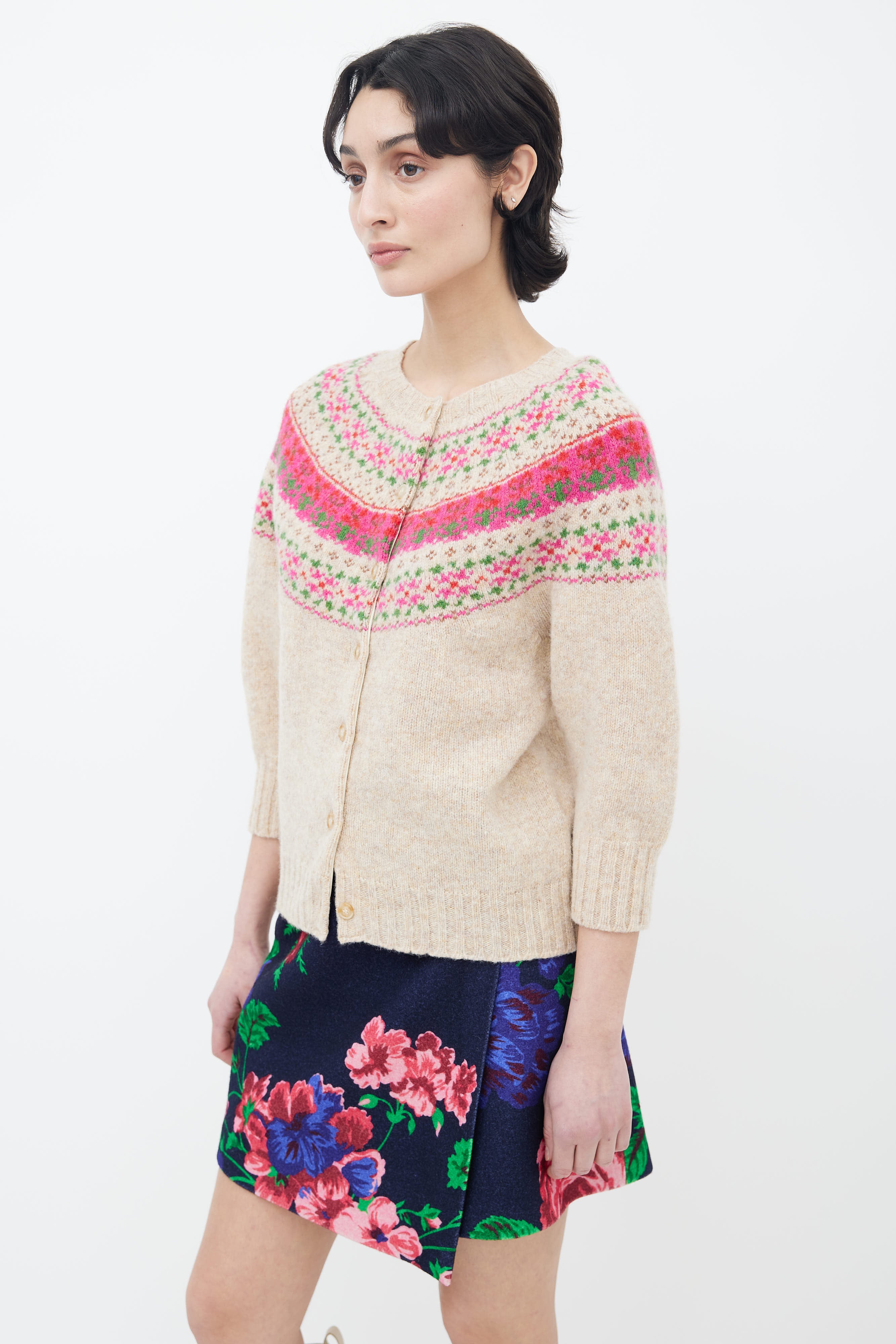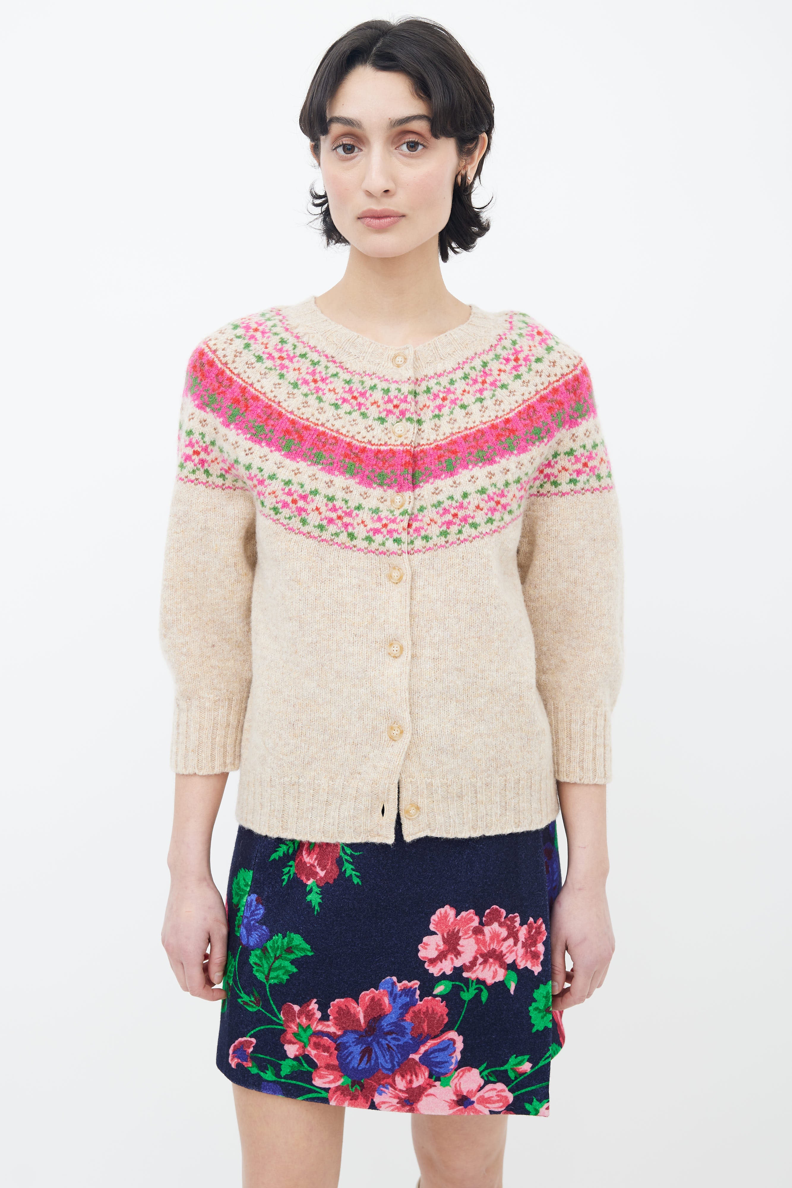 Beige & Pink Fair Isle Knit Cardigan Small Size Guide