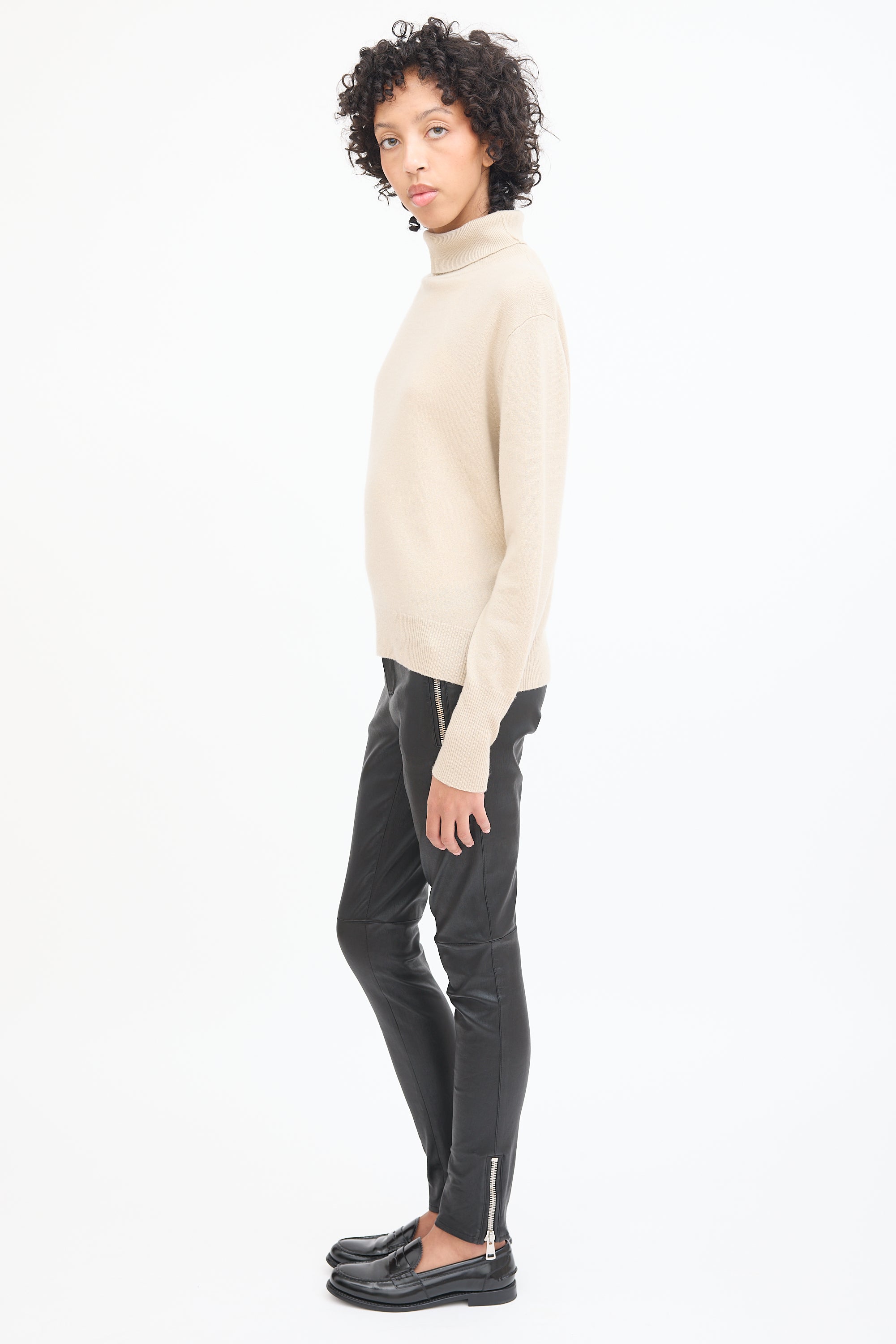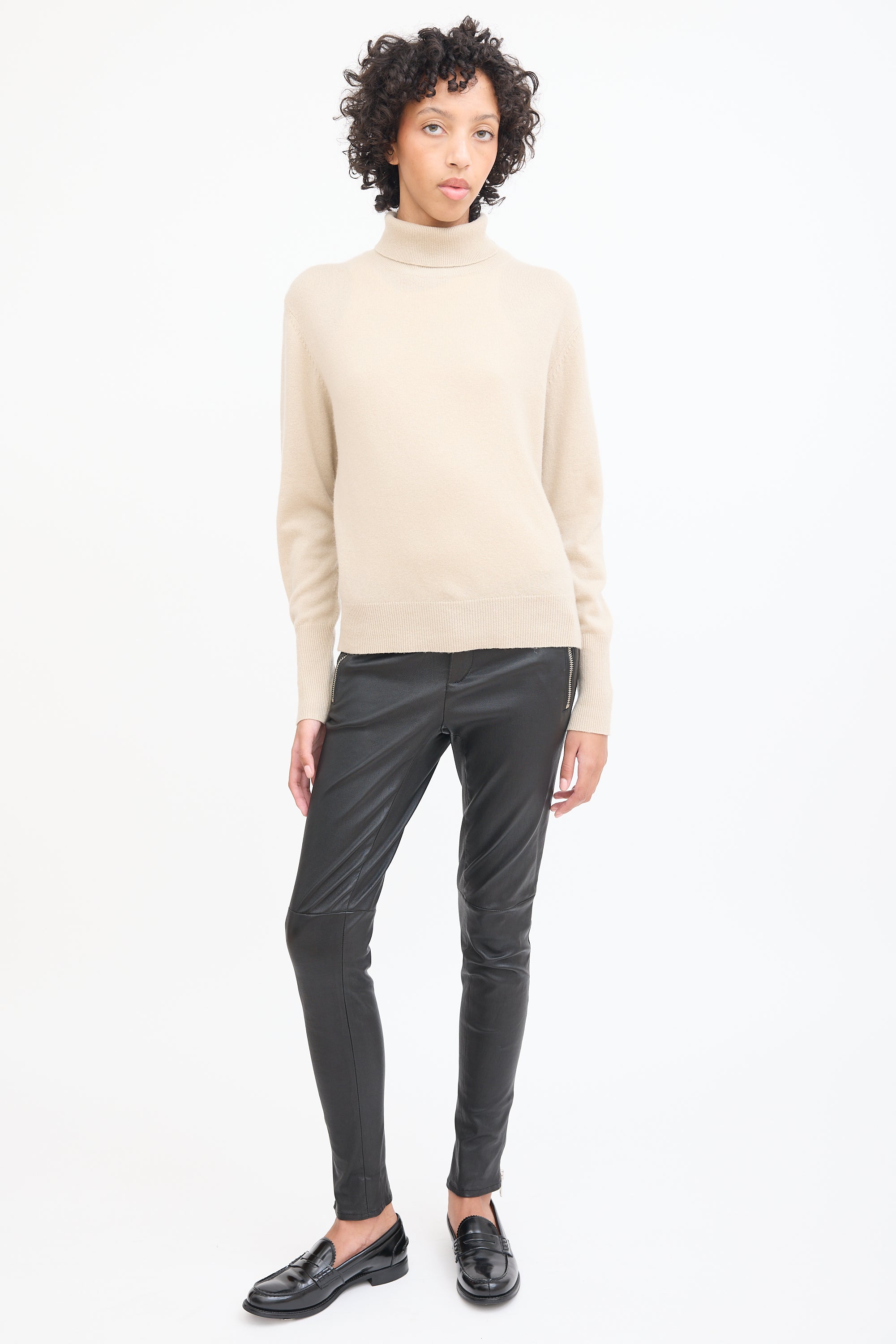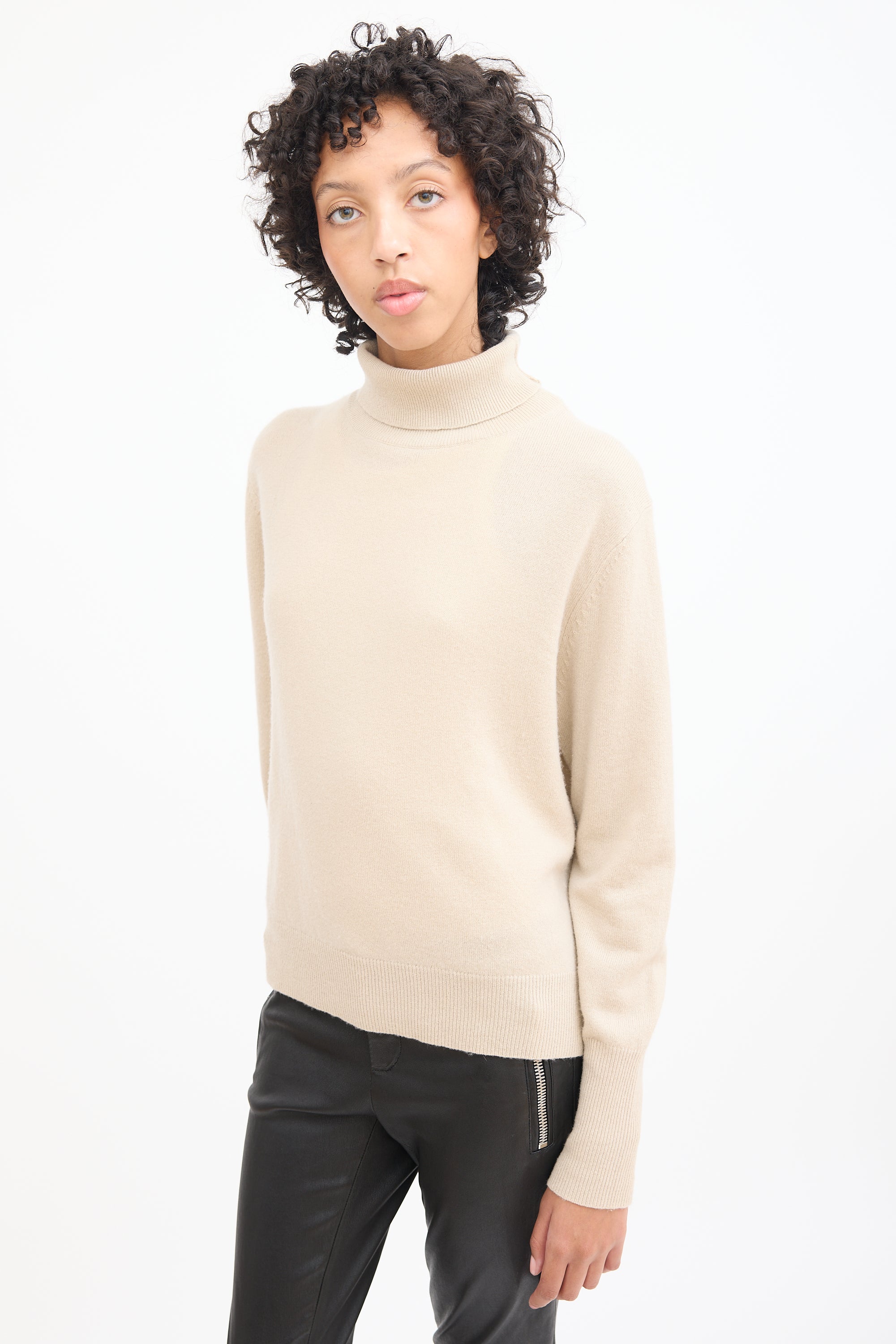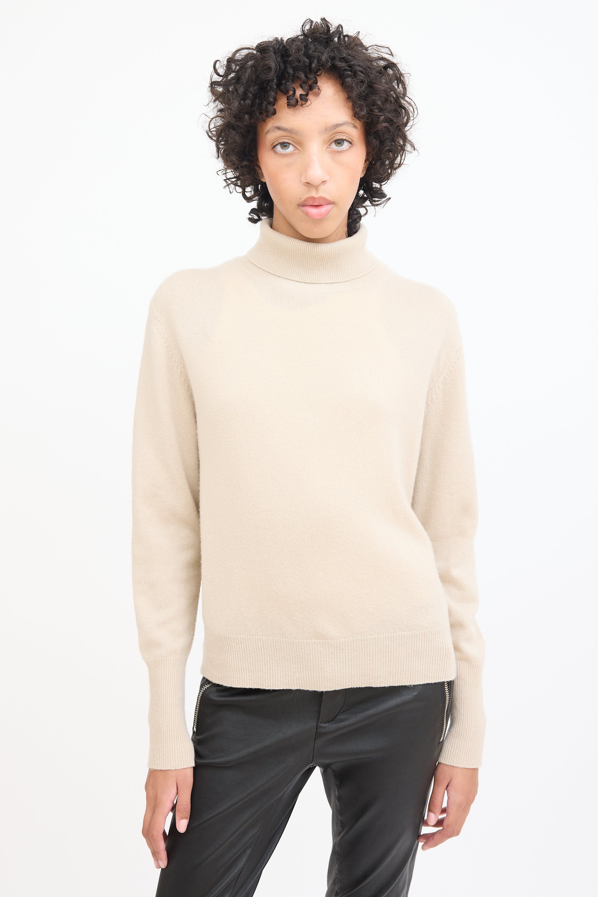 Beige Cashmere Knit Turtleneck Medium Size Guide