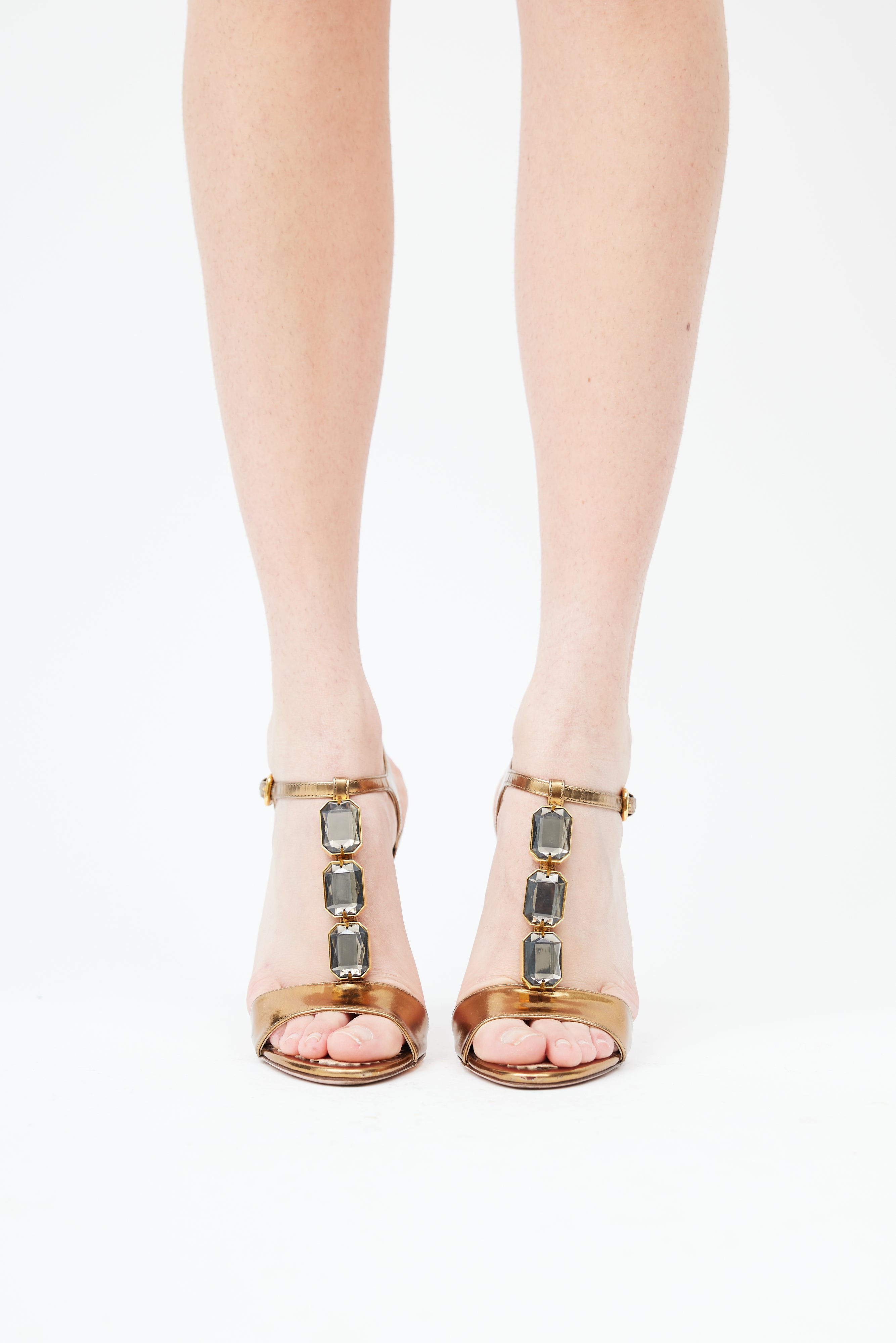 Metallic Gold Leather Gem Embellished Heel IT 37 Size Guide
