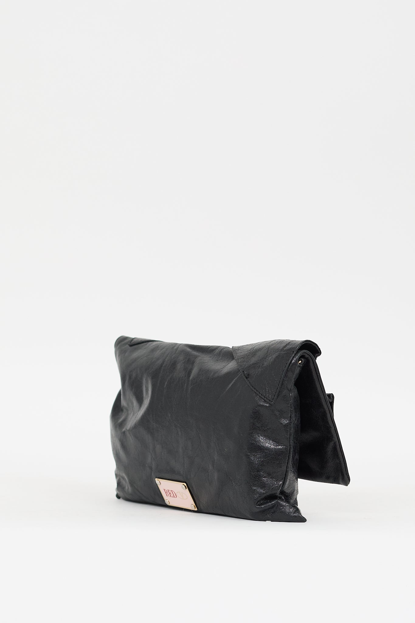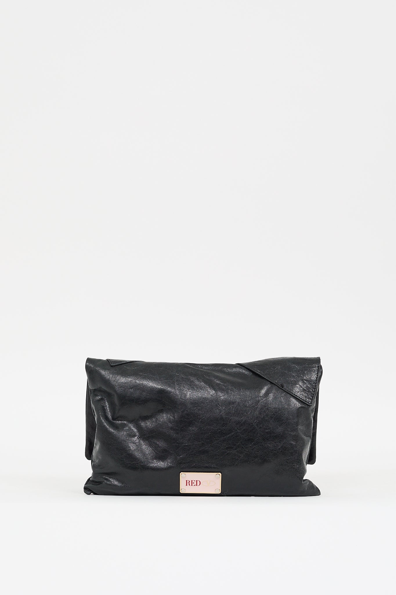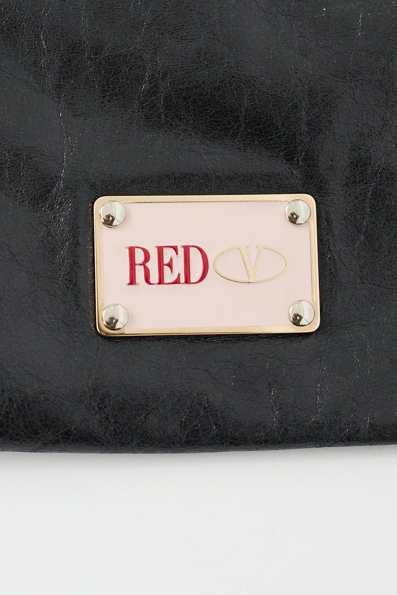 Pre-owned Red Valentino black leather crossbody bag featuring attached bow at top flap, snap button closure, logo enamel at back, attached and fixed chain shoulder strap, canvas lined main compartment, and one zip pocket inside.