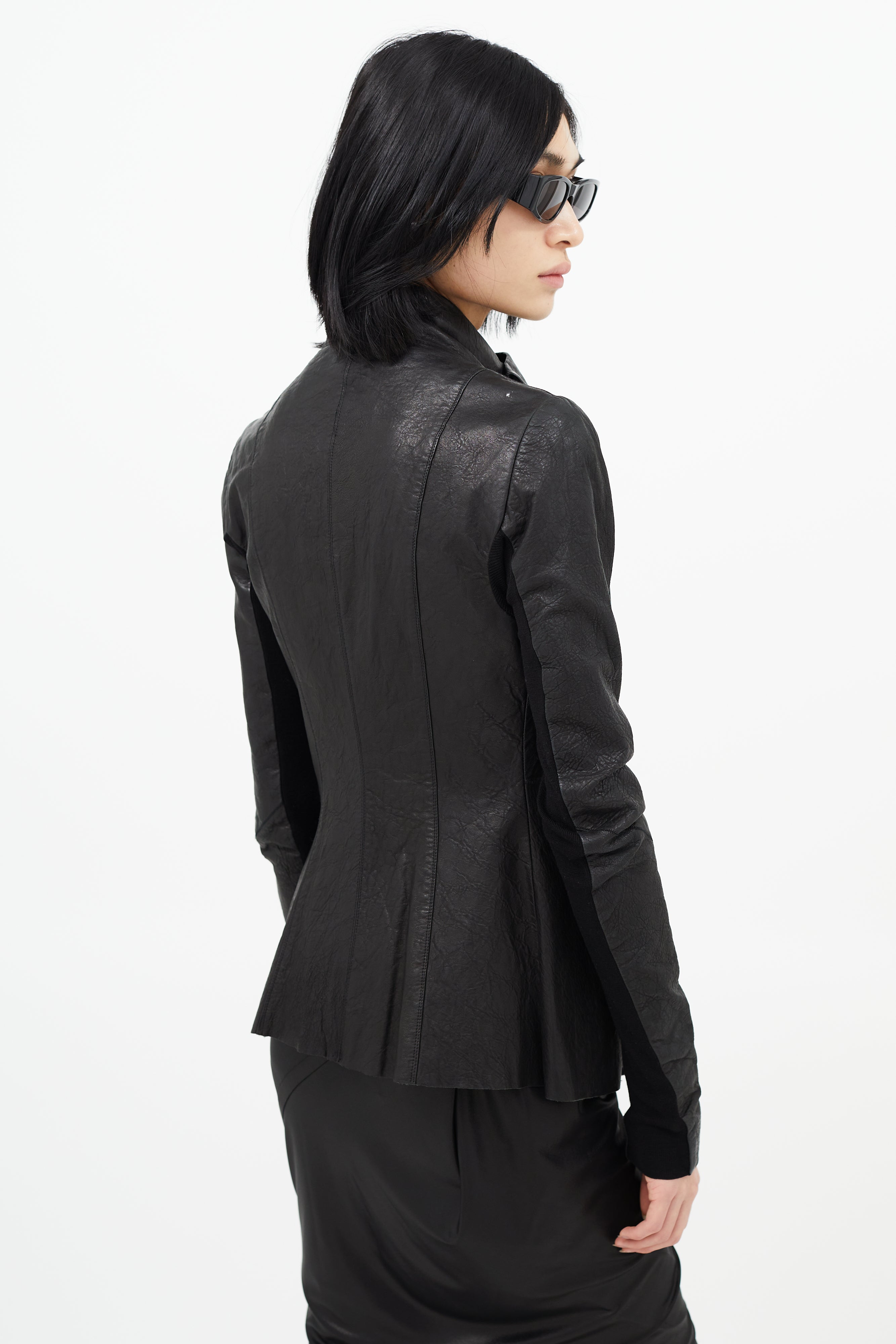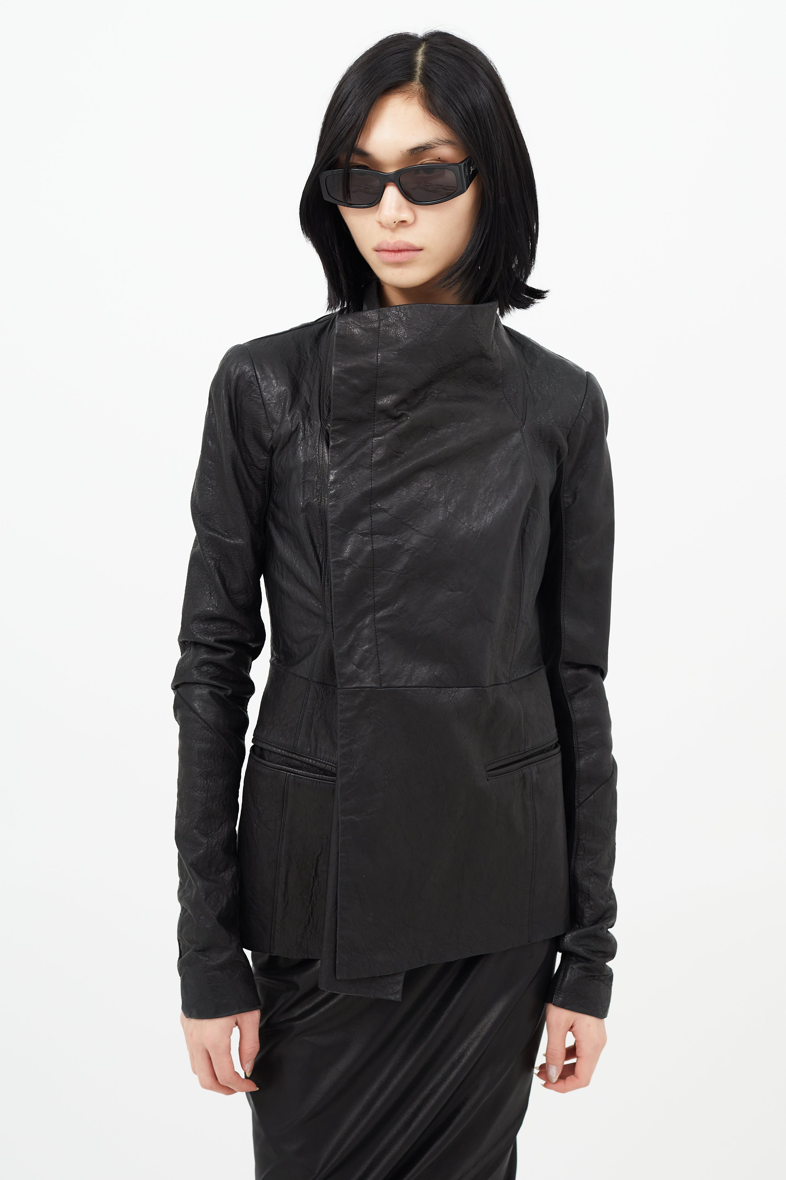 Black Leather Asymmetrical Button Jacket US 6 Size Guide