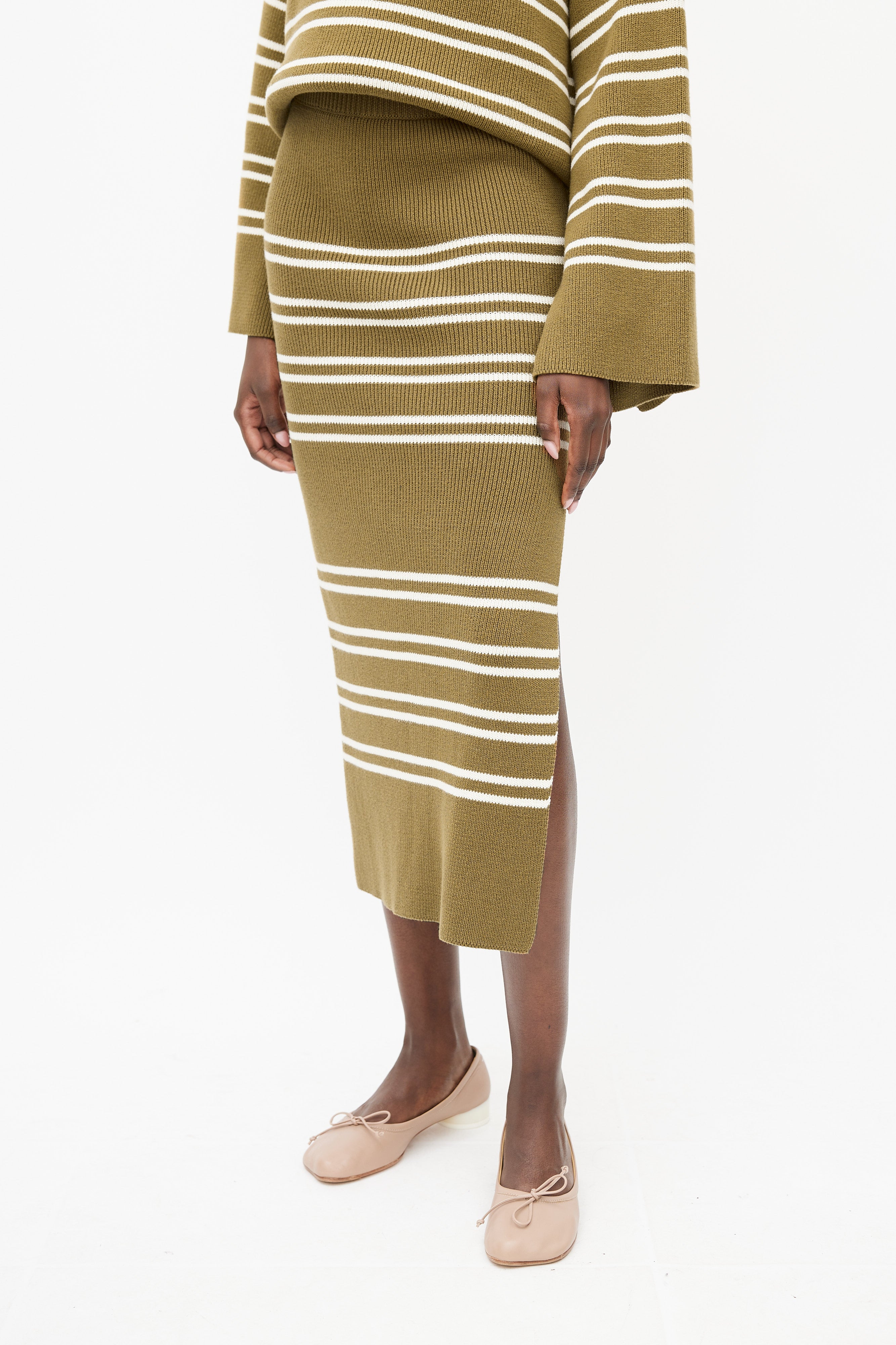 Green & Cream Ribbed Sweater & Skirt Set Medium Size Guide