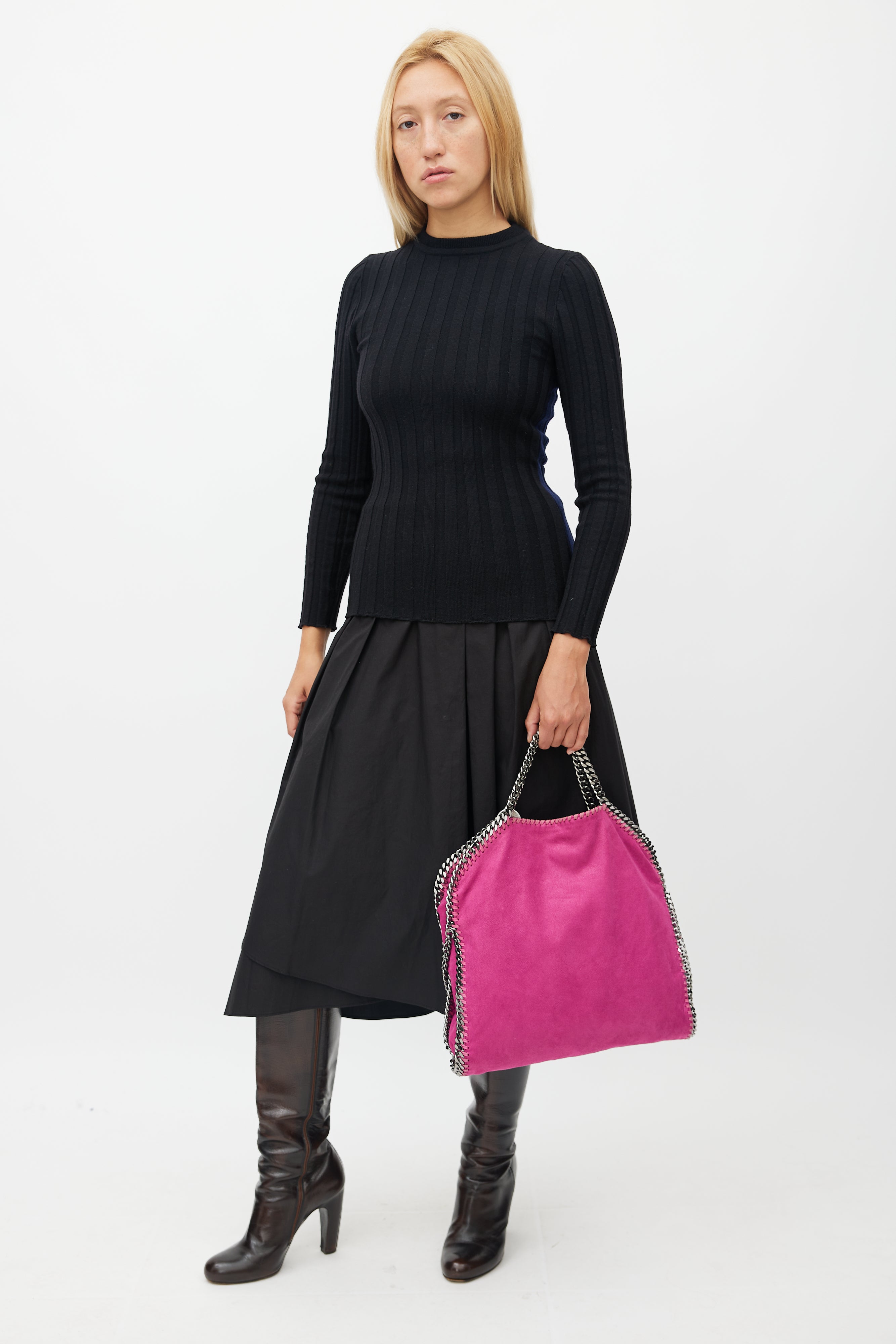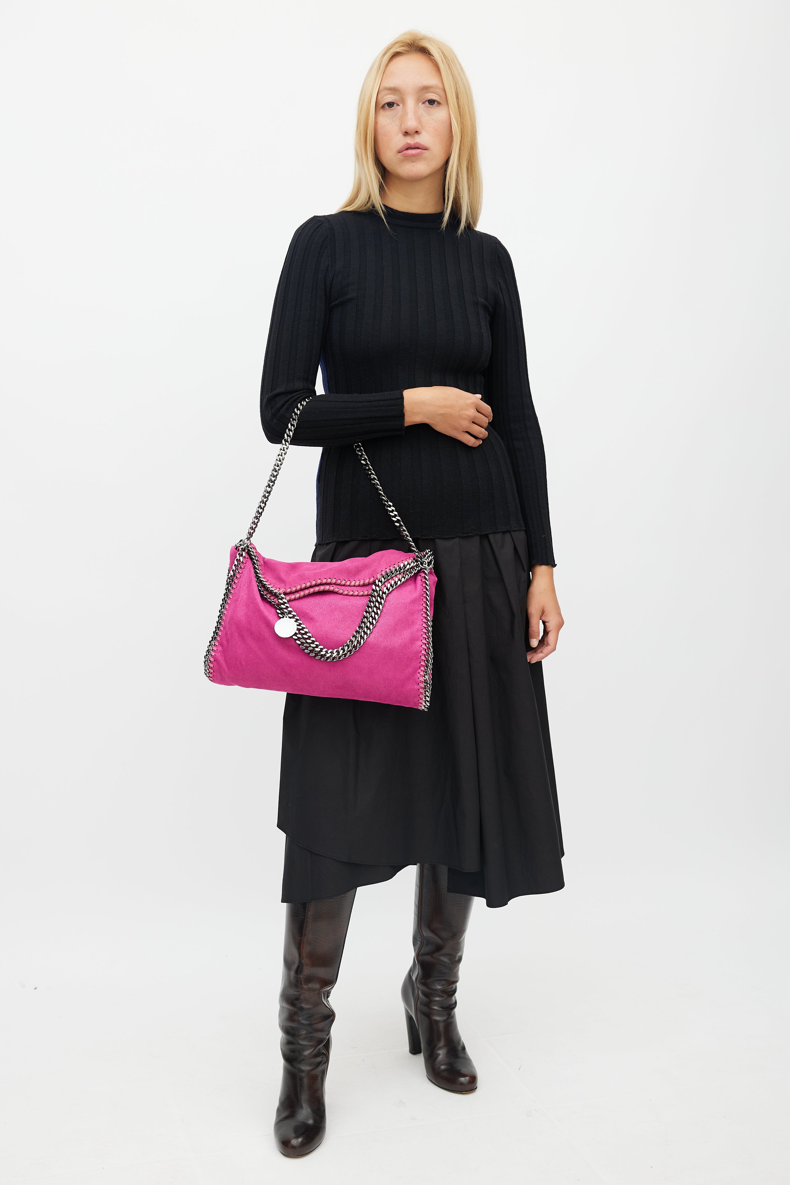 Pink & Silver Falabella Suede Bag