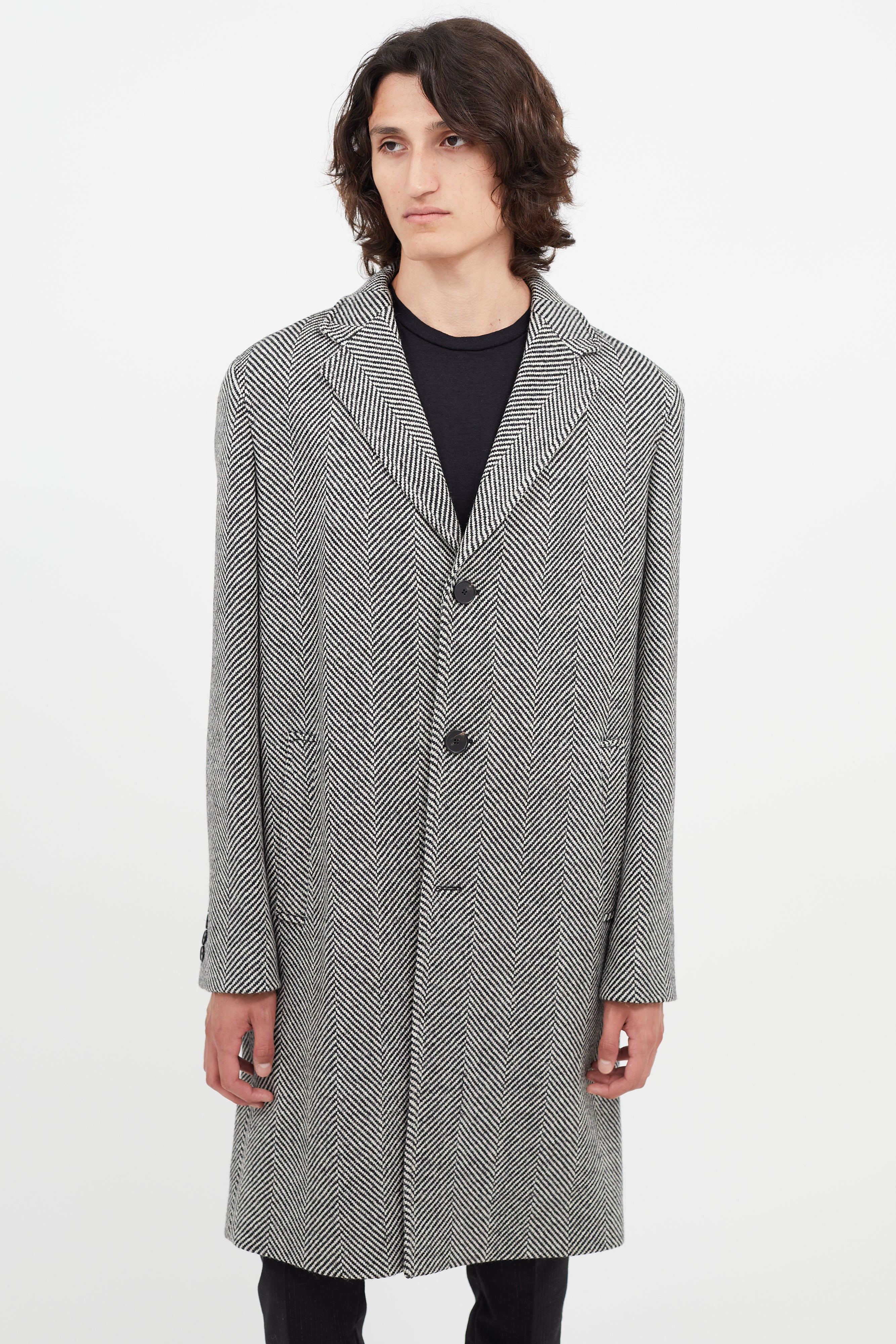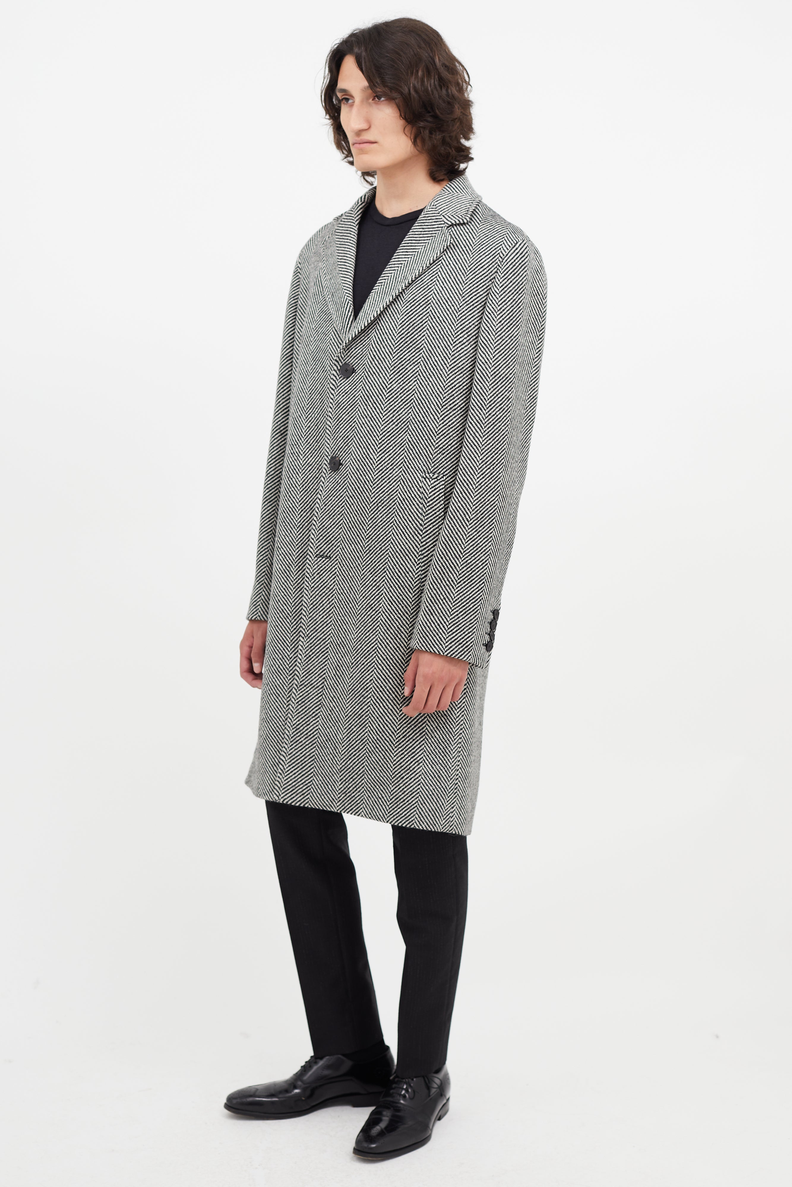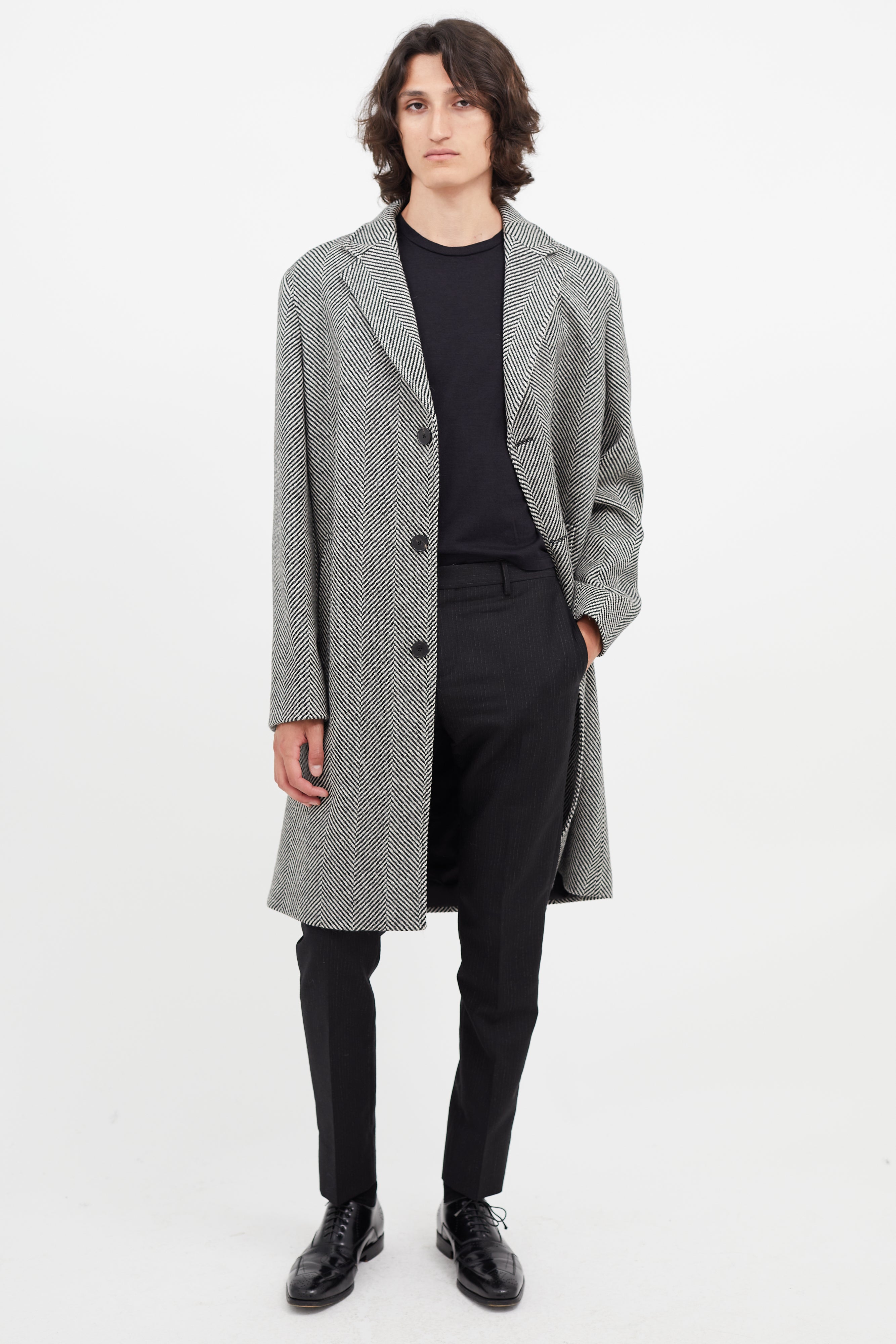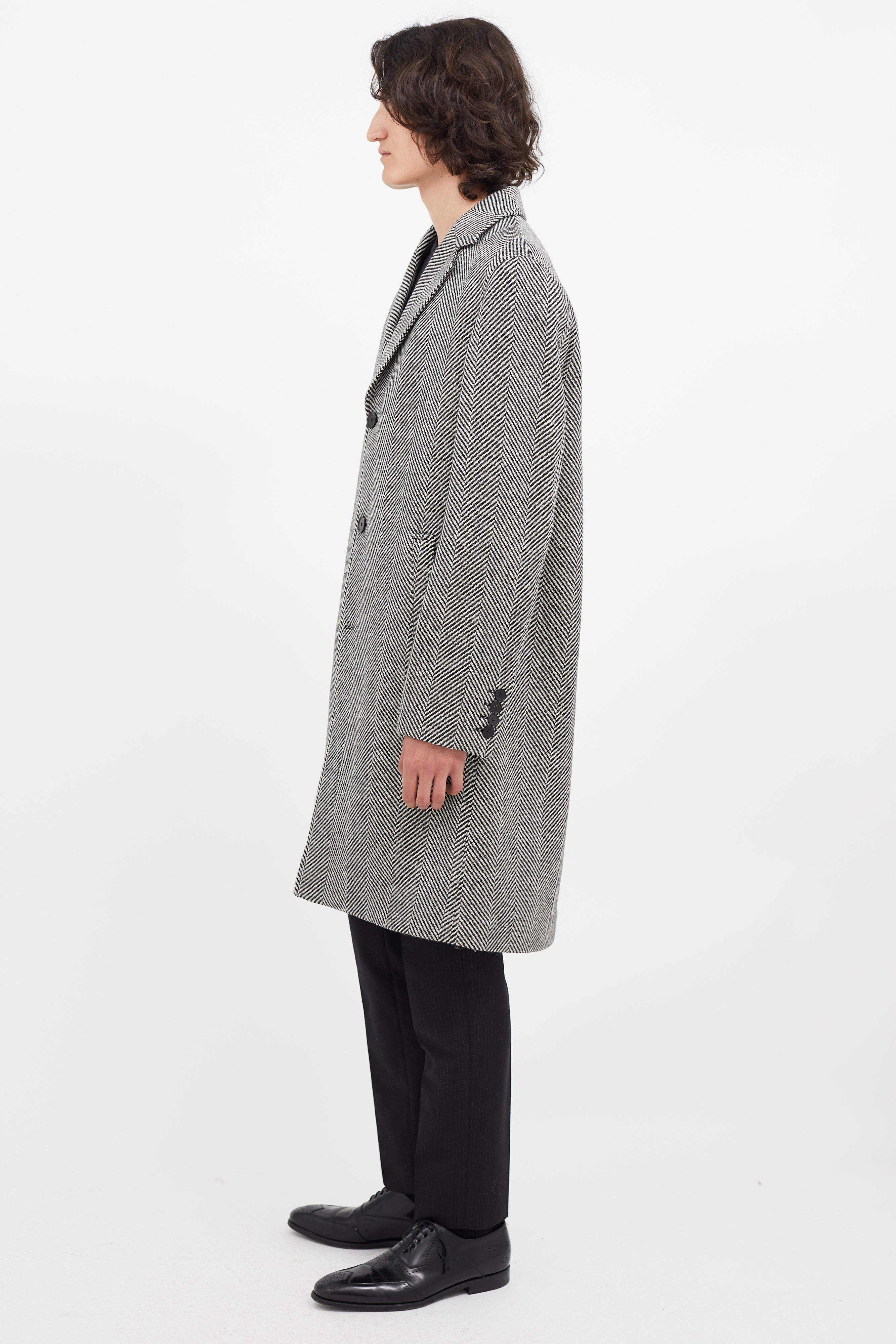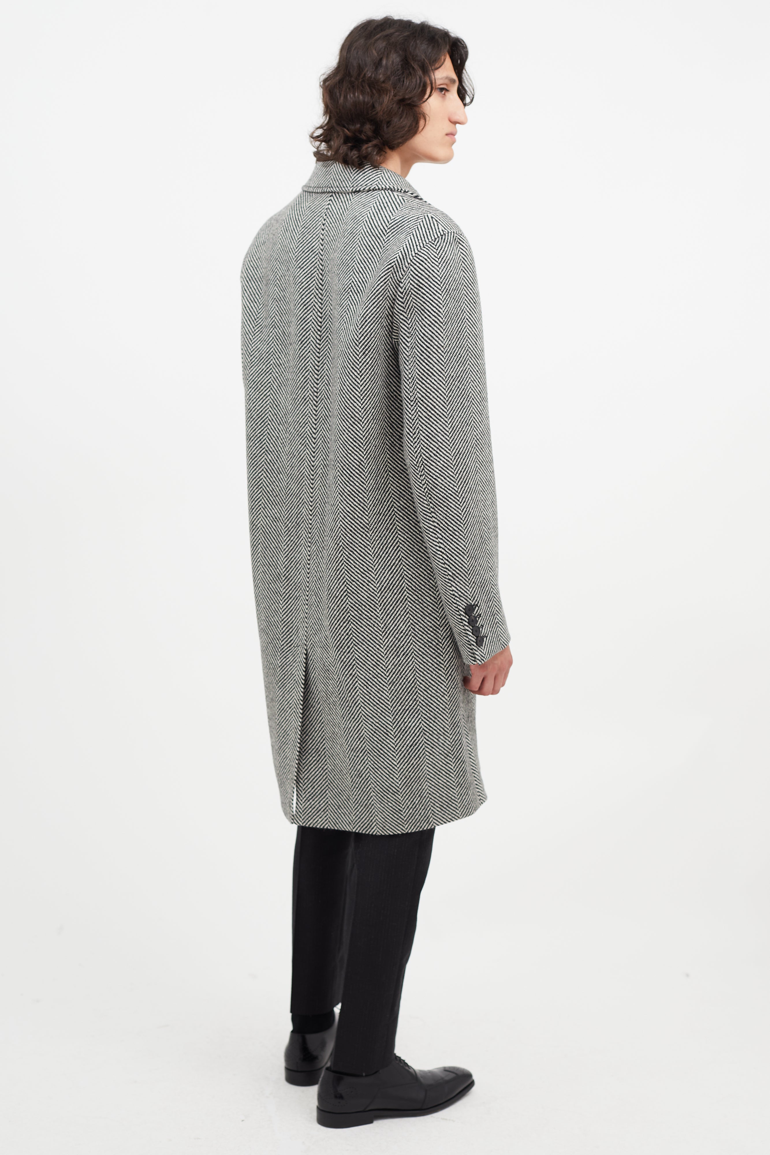 Black & White Wool Houndstooth Coat IT 48 Size Guide