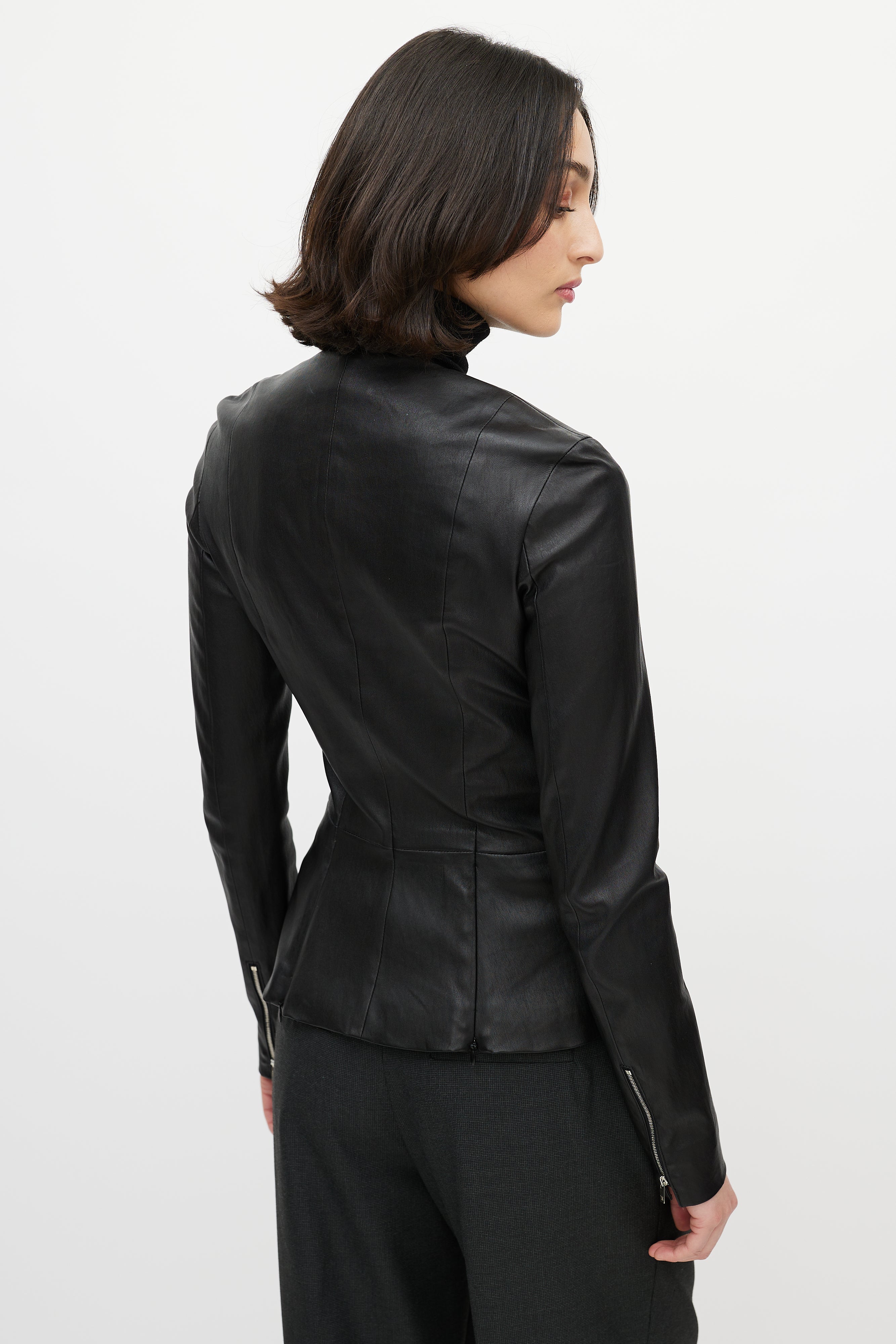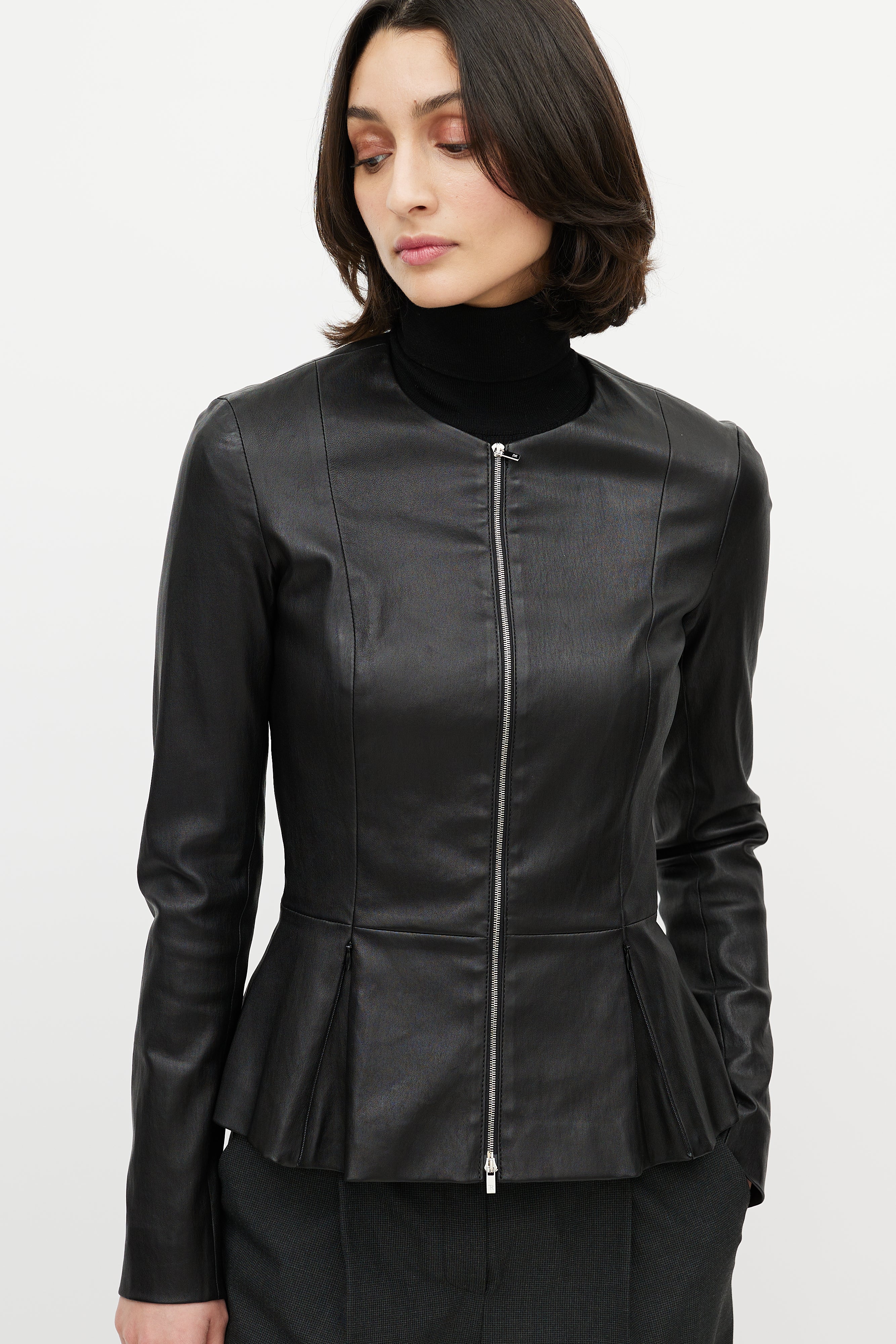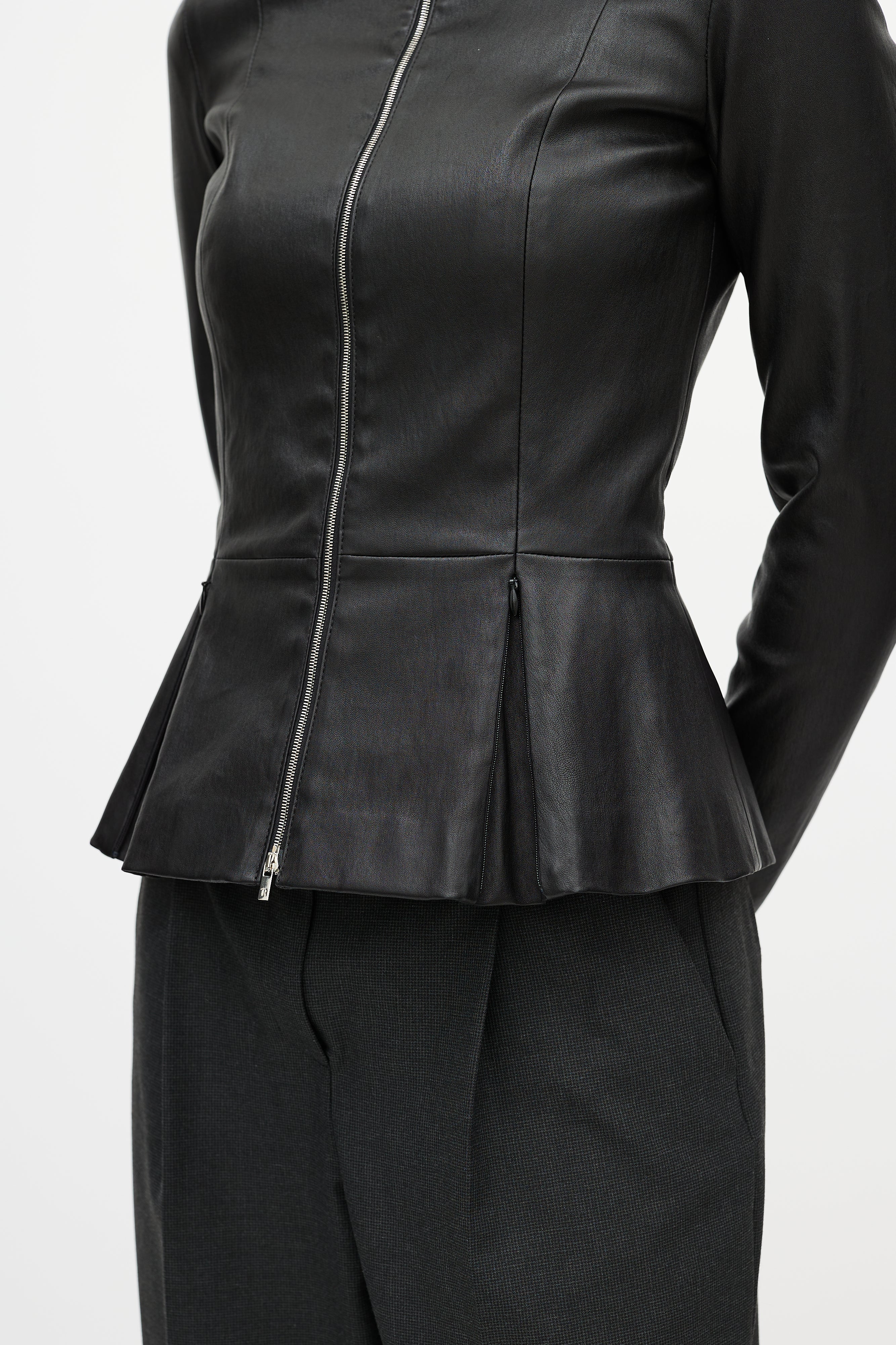 Black Leather Anasta Peplum Jacket US 4 Size Guide
