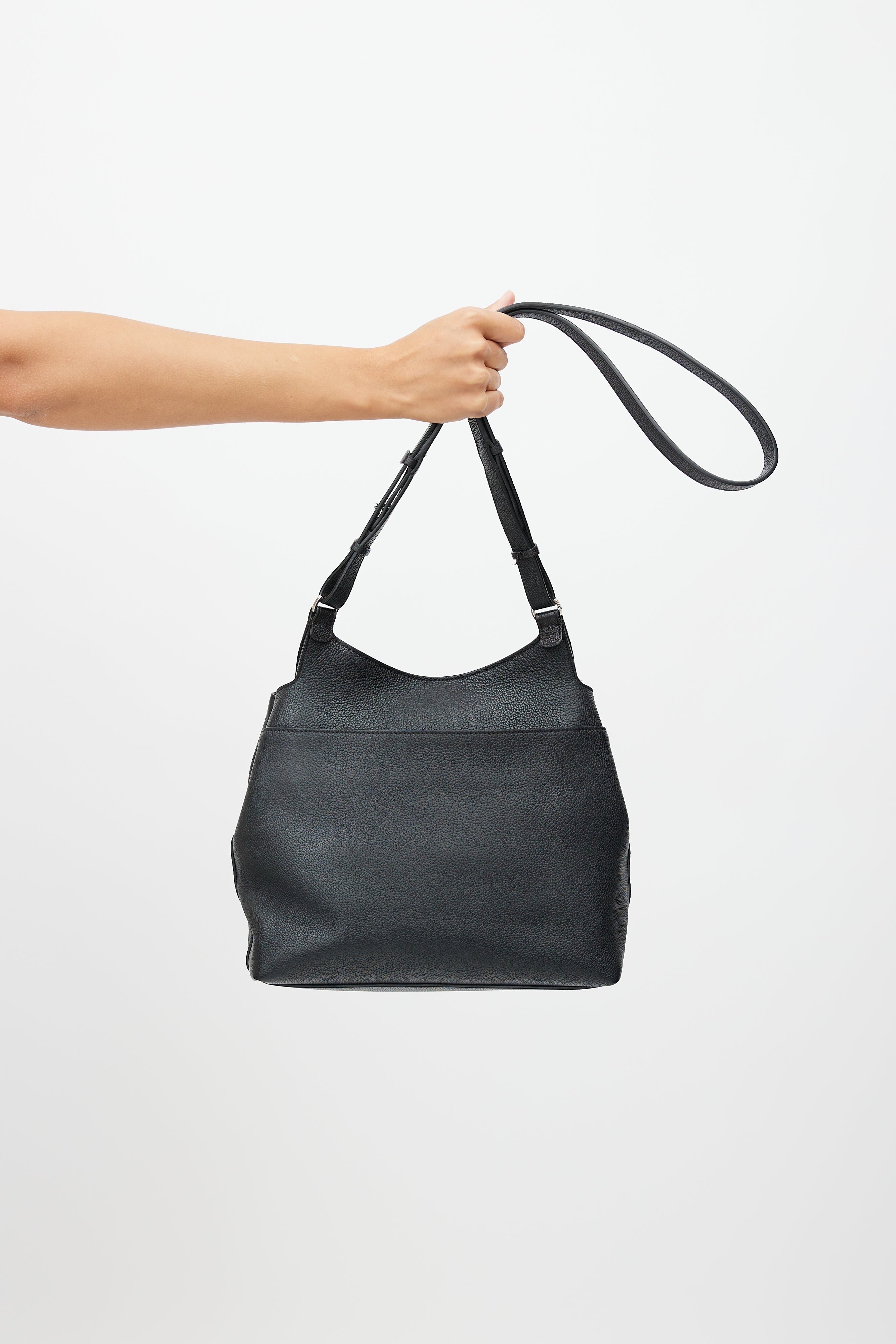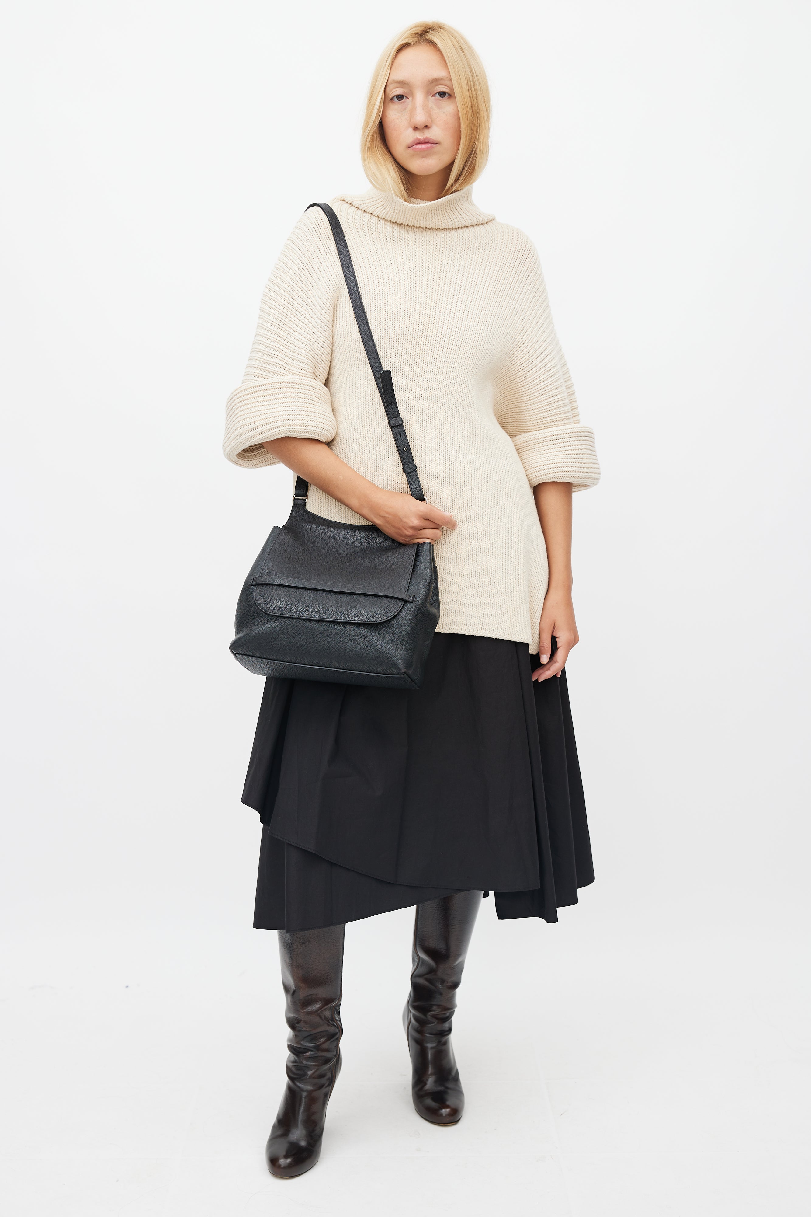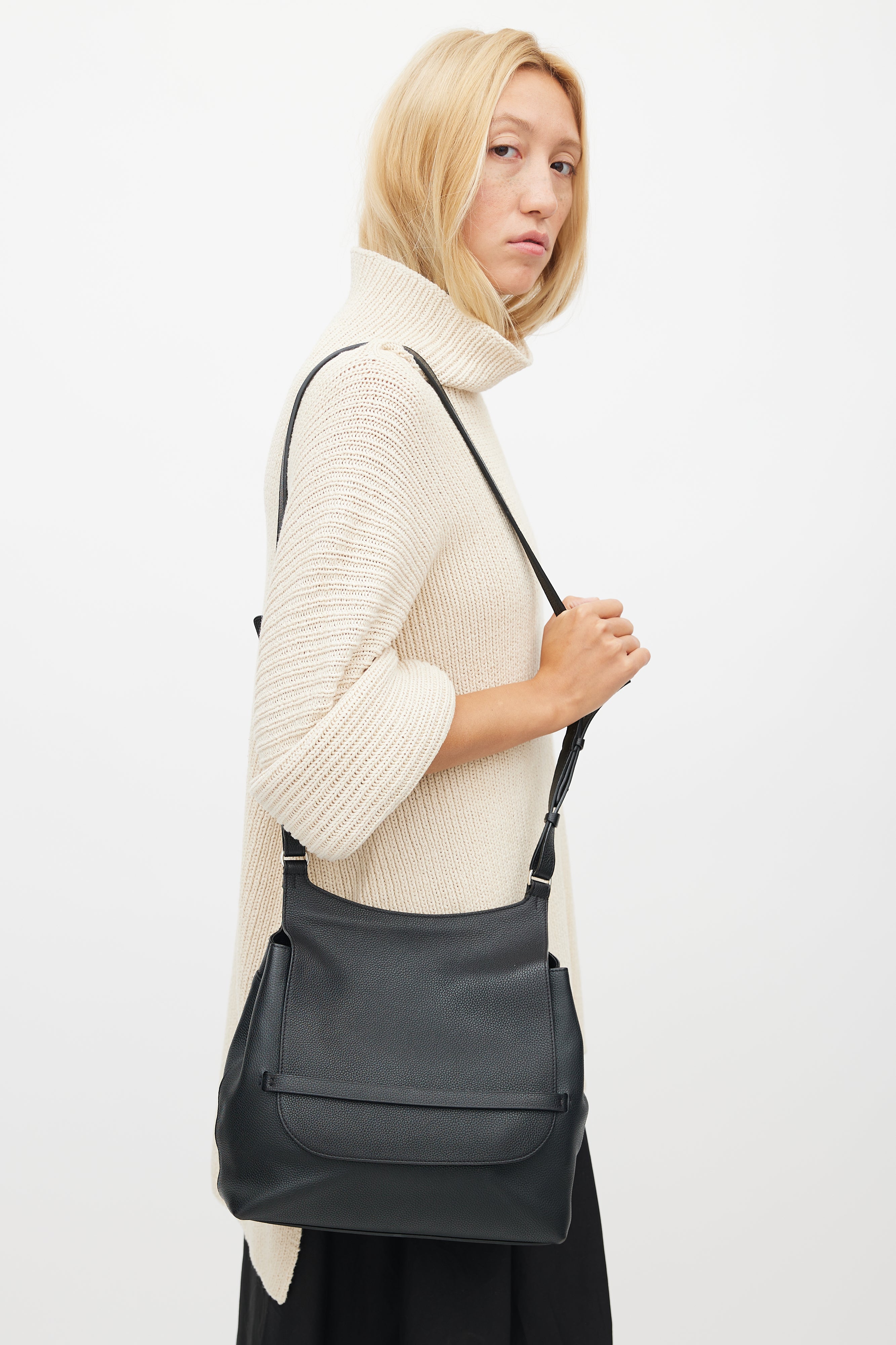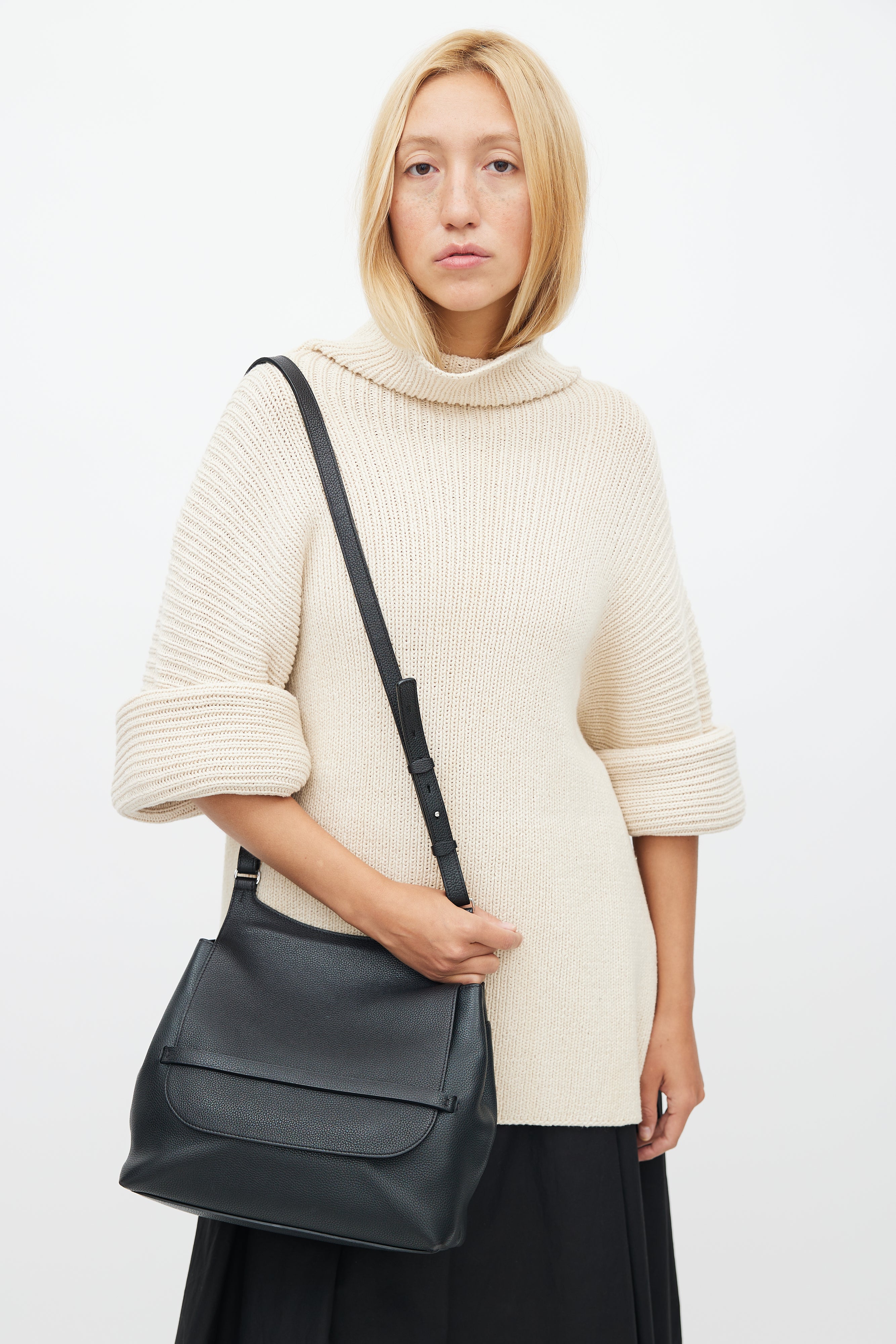 Pre-owned The Row black Sideby leather bag featuring a top flap, one main compartment with two slip pockets and one zip pocket, and removable shoulder strap. Comes with original dust bag.